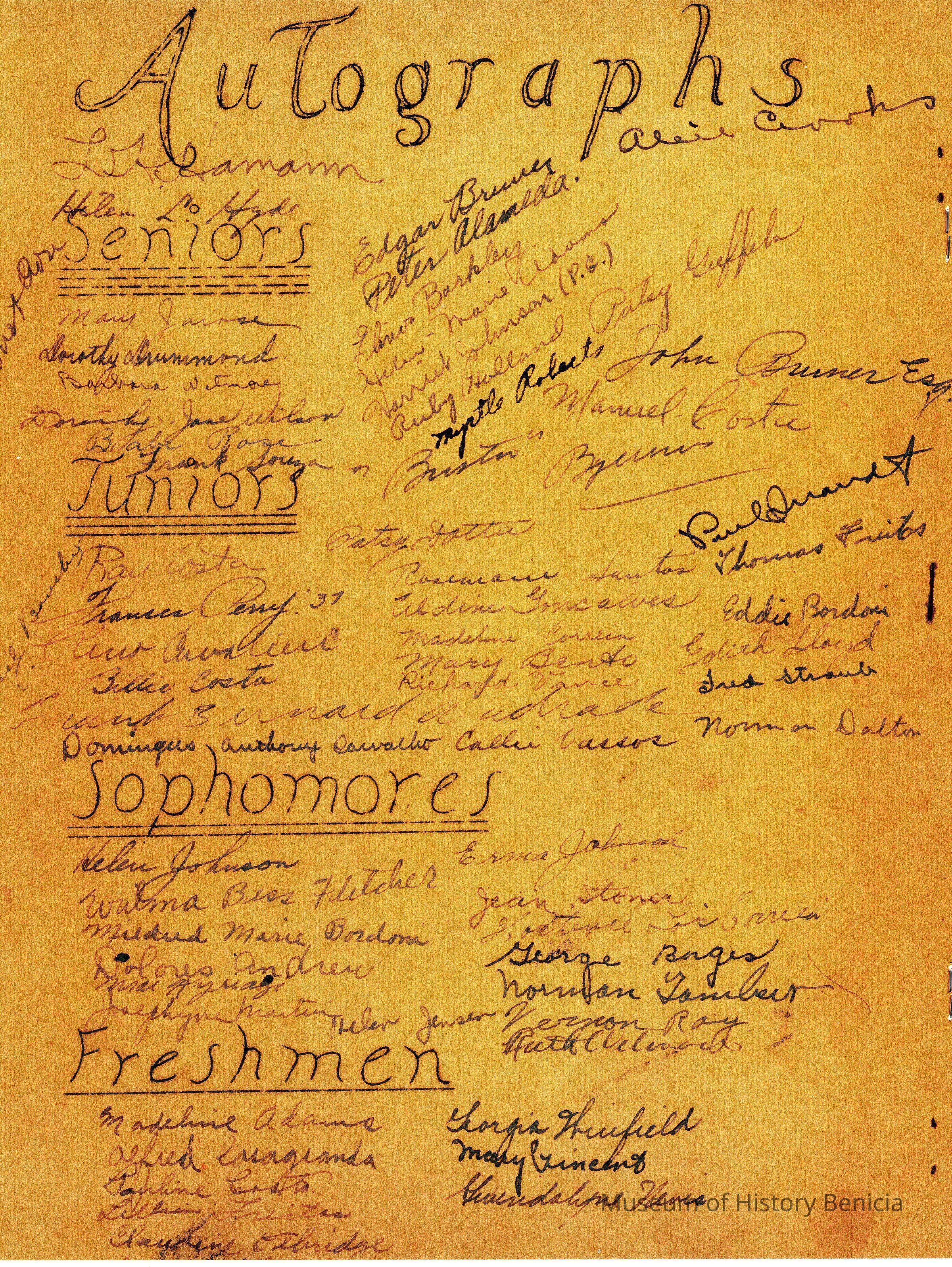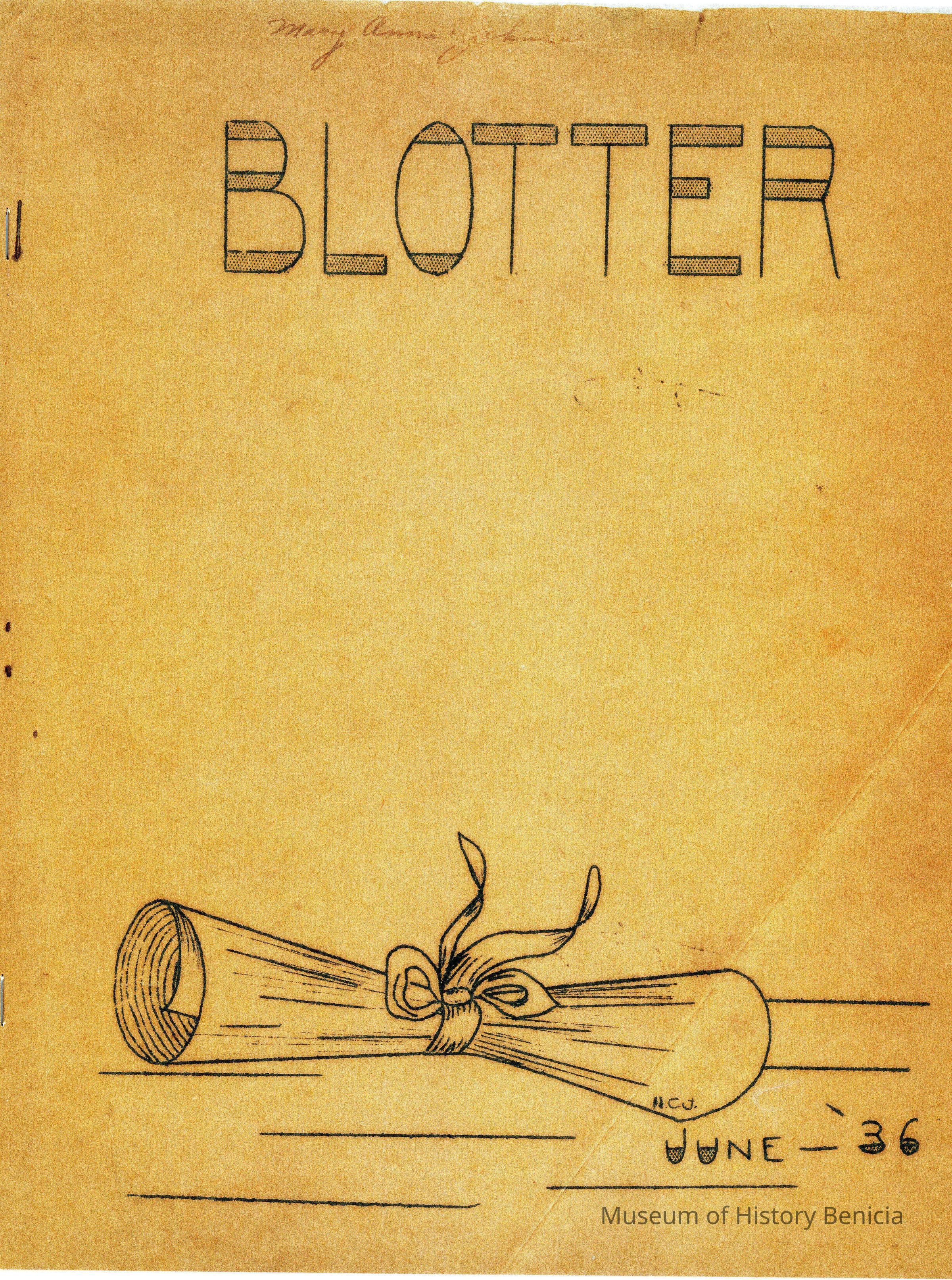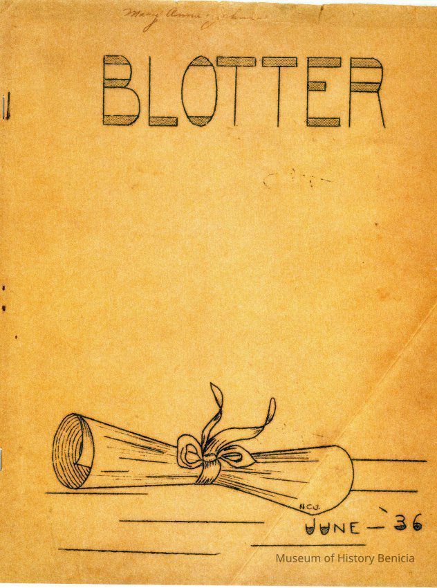 Benicia High School "Blotter" from 1936. This is a copy of the original Blotter. The back is signed by various classmates.