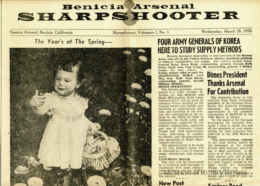 This is a Sharpshooter newspaper from Benicia Arsenal for March 28, 1956 Vol I - No 3.