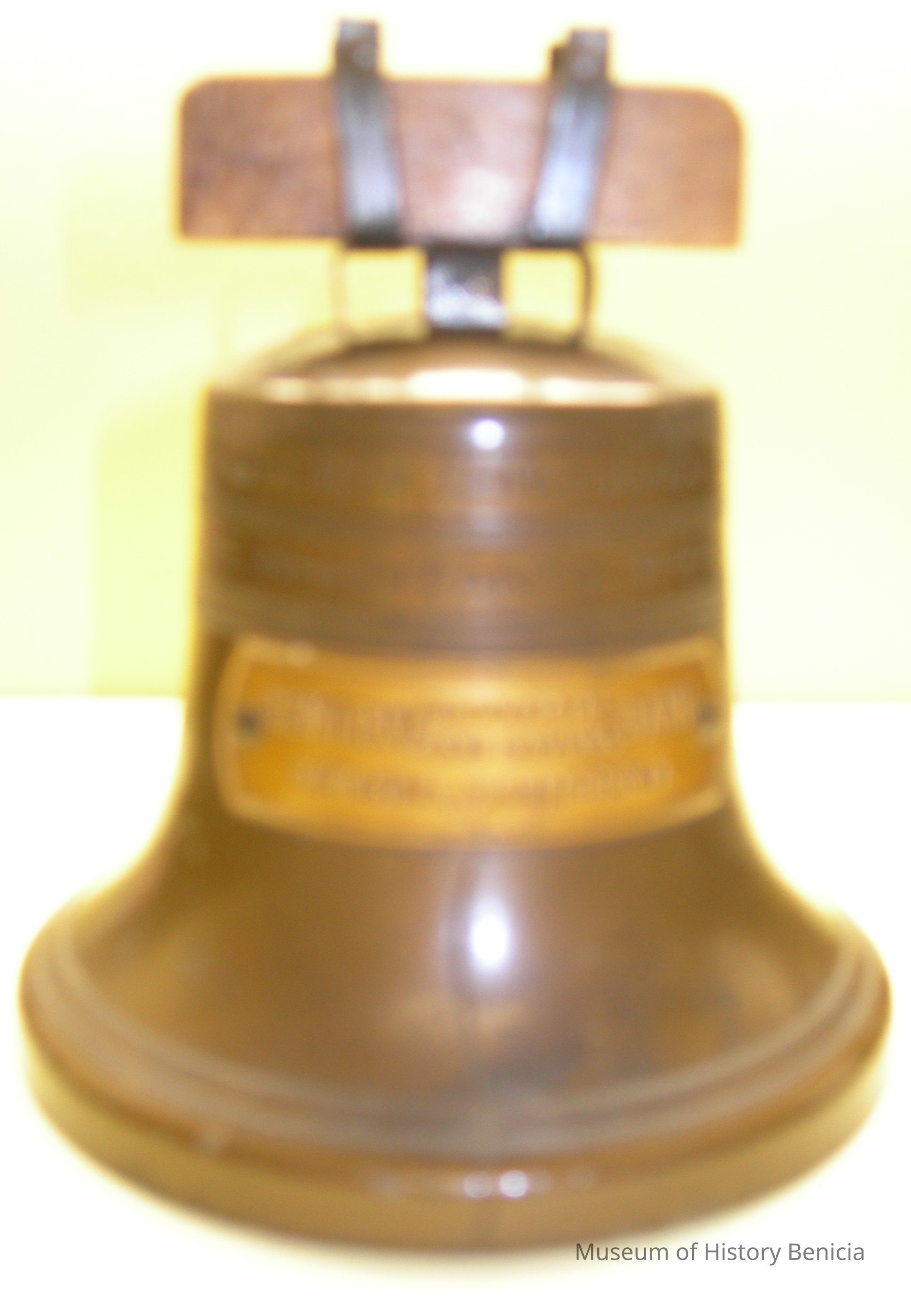 bronze colored advertizing give away Liberty Bell reproduction for "Central Commercial and Savings Bank Benicia California" on small plaque on front; around top front:
