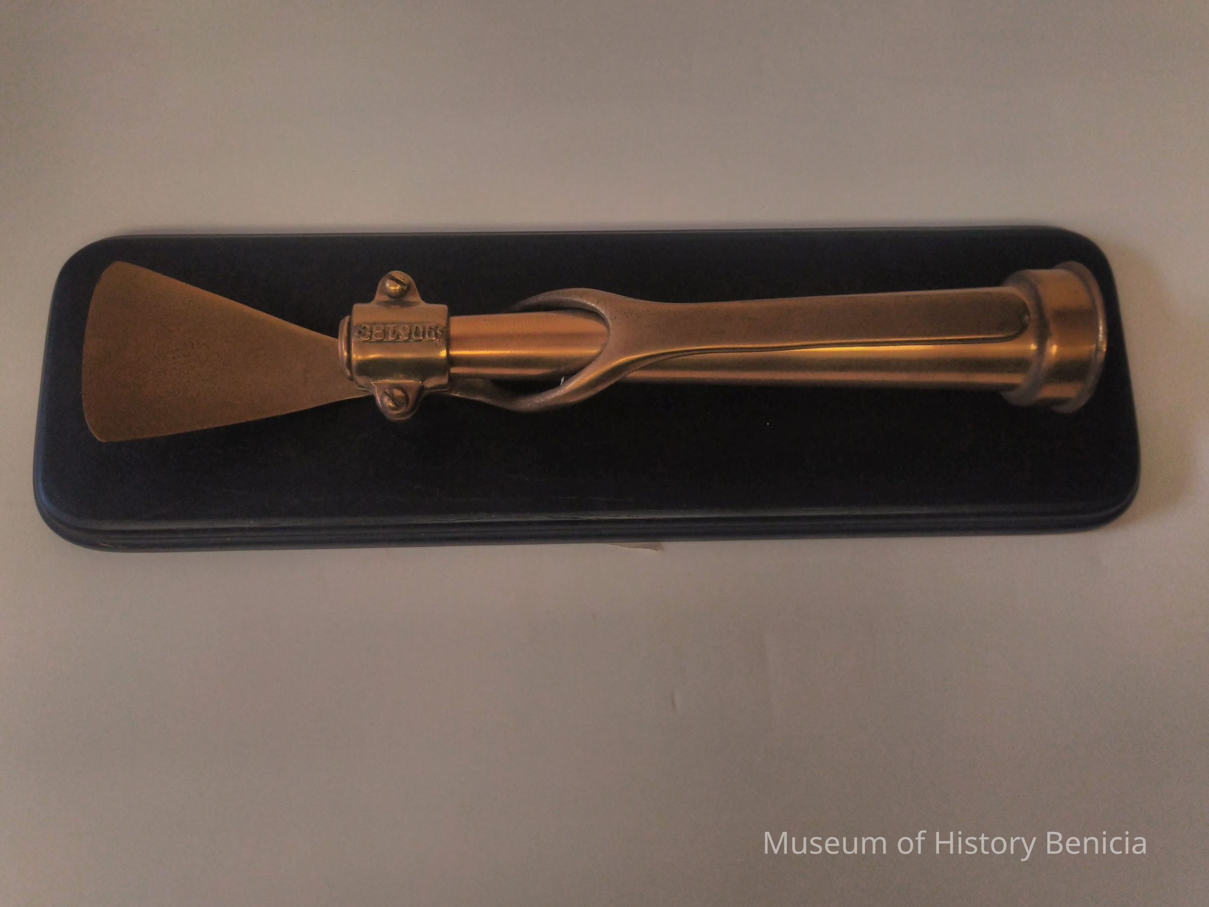 Brass Directional Fire Nozzel - Supposedly an SFFD Piece on a black wood frame - 90618C