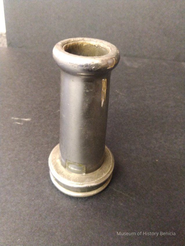 Silver metal Screwon Fire Nozzle tip - Benicia Arsenal Fire Dept. POWHATAN - Probably platted brass