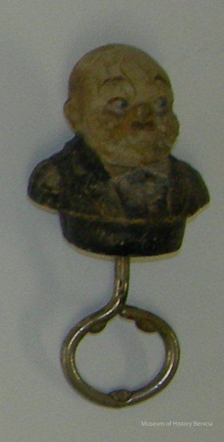 wooden handle in the shape of head & shoulders of a bald man (very poor condition)