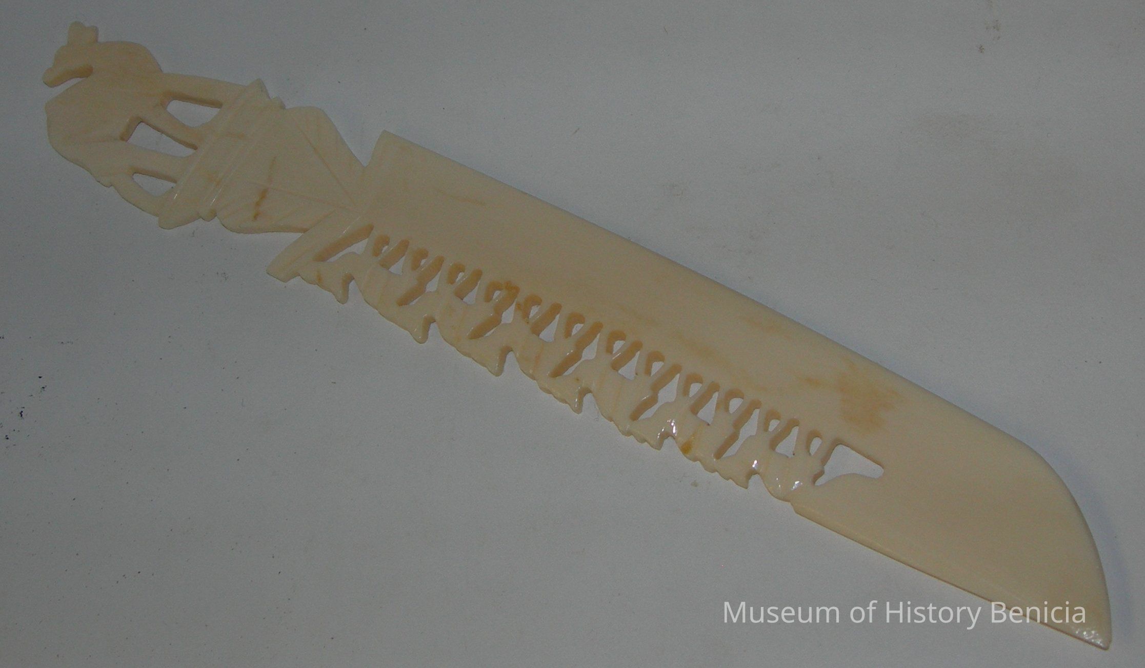 Letter opener: at the top is a standing camel, on one side of the blade is a row of 6 carved camels