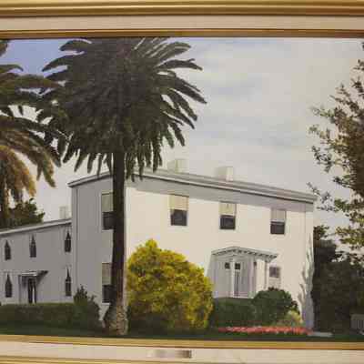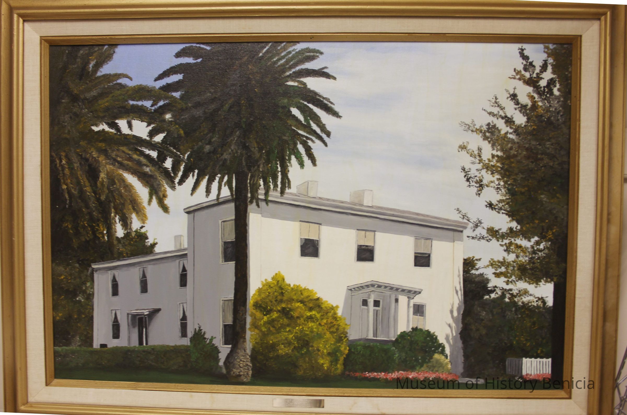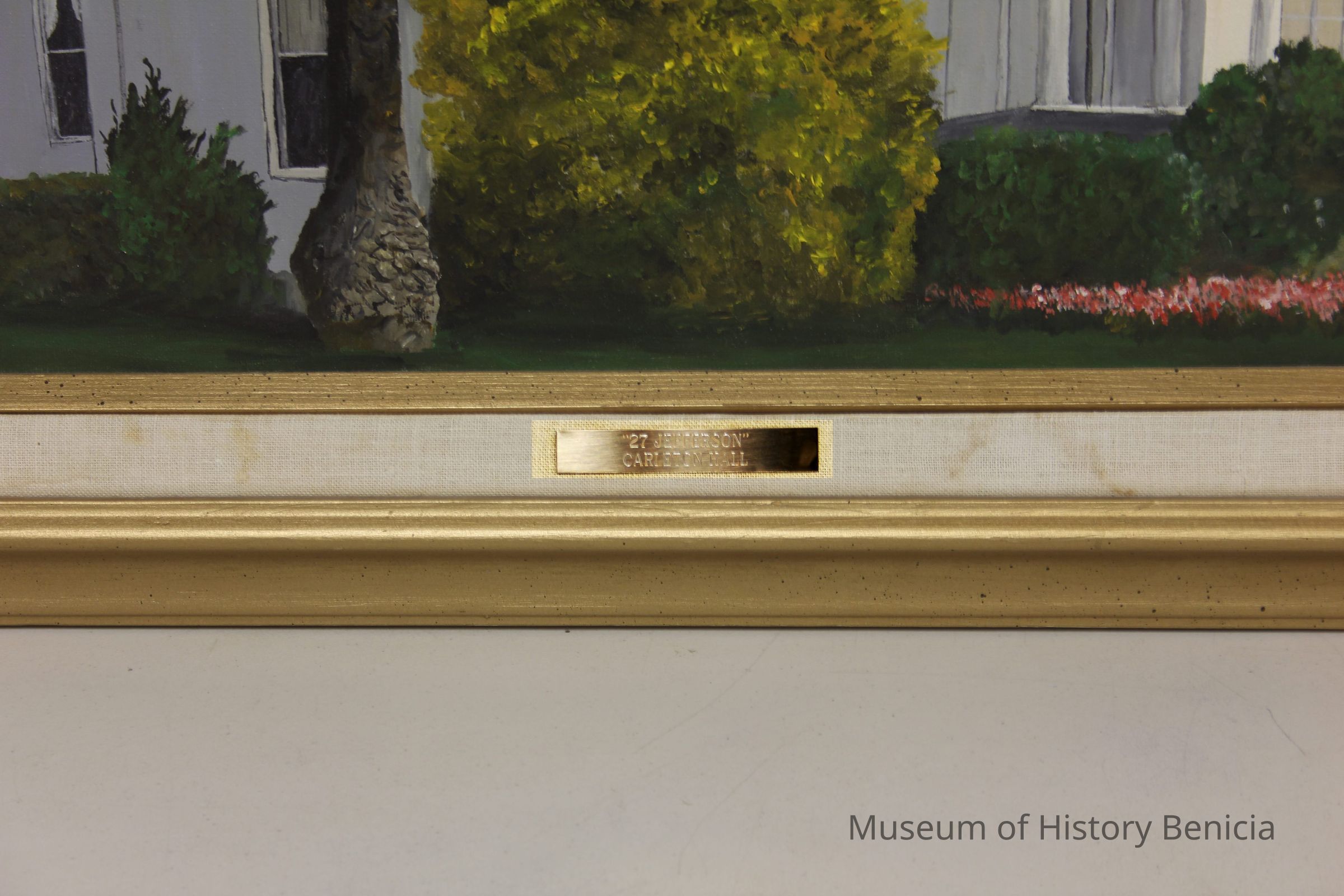 Painting by Carleton Hall of the Jefferson Mansion. The painting with frame is 31" x 43". There is a brass tag on the front that identifies the painting as "27 Jefferson" and the artist as Carleton Hall.Collection