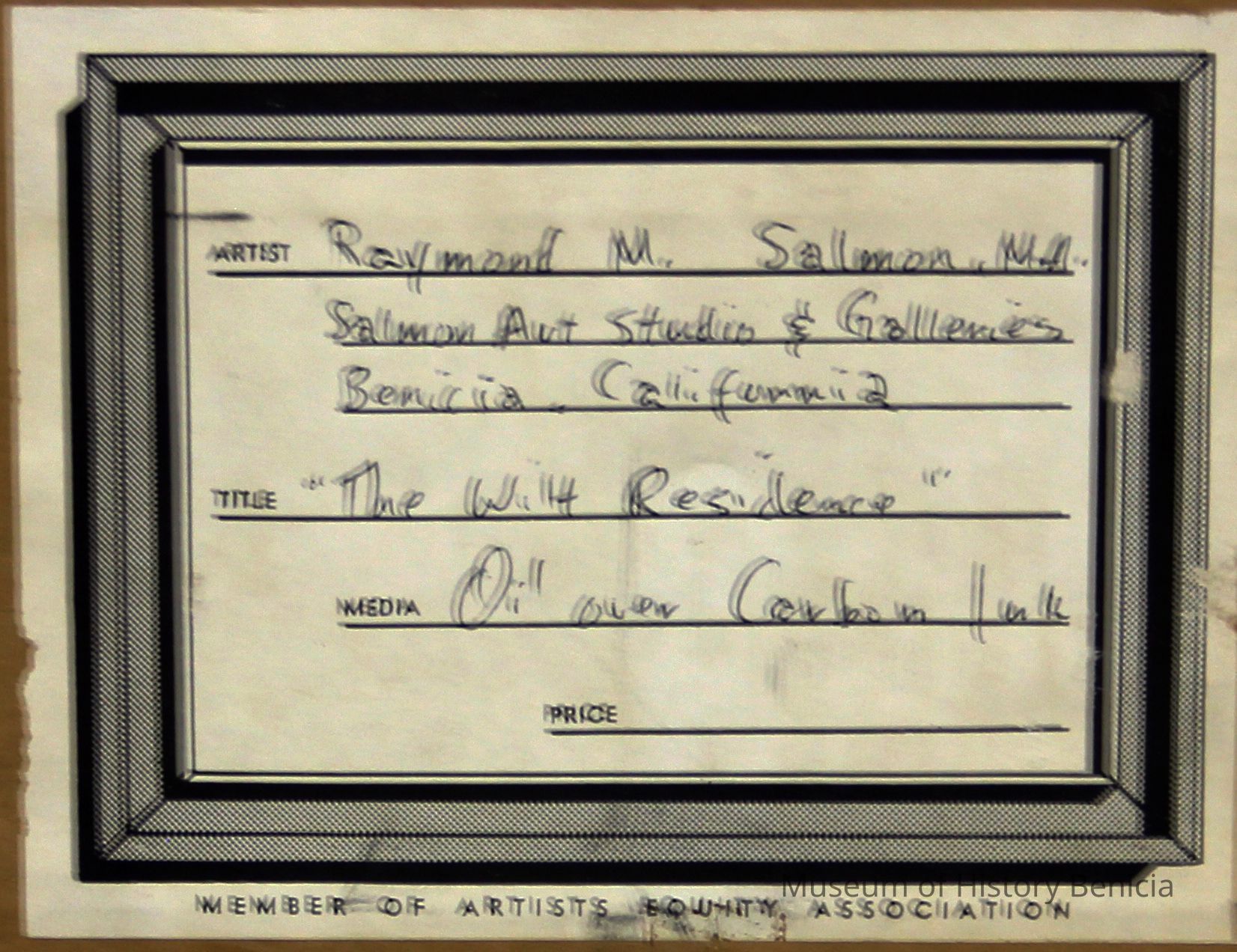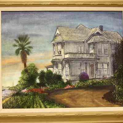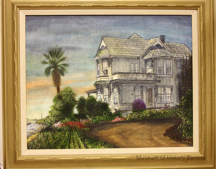 Painting by Raymond M Salmon of the Wilt's residence. Mr. Salmon was a painter with a gallery in Benicia in the mid-1960s in the 400 block of First street, The painting is of a residence near the Crooks mansion.Collection