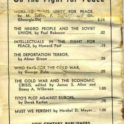 Pamphlet - black/white cover: "Hell-Bomb or PEACE?" by Joseph Clark [the author of this pamphlet, is Foreign Editor of the "Daily Worker". He is a veteran of the last world war, having served in the Infantry where he was awarded the Silver Star for heroism in action. Among his other pamphlets are "Behind the Berlin Crisis" and "We, the People."]