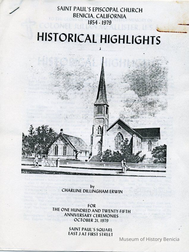 A historical summary of the history of St. Paul's Episcopal Church. It was written by Charline Dillingham Erwin for the 125th anniversary of St. Paul's in October 21, 1979. Attached to this document were 5 8 x 10 glossy photos having to do with St Paul's. I assume these were somehow reproduced and attached to the final product. The photos are accessioned under photos.Collection