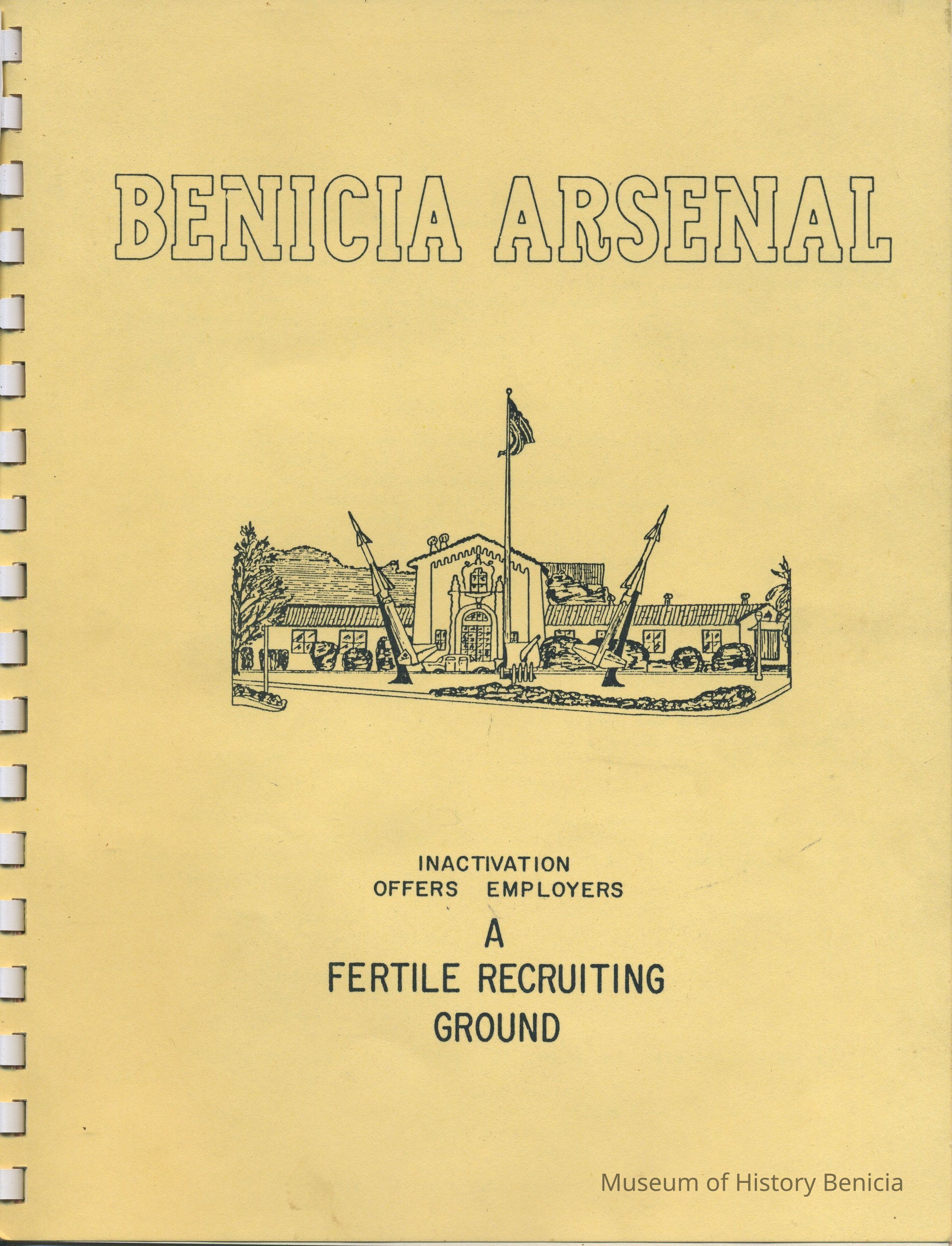 Pamphlet/Booklet - "Benicia Arsenal" [drawing of the Administratio Building in late 1950's] "Inactivation Offers Employers" - "A Fertile Recruiting Ground"