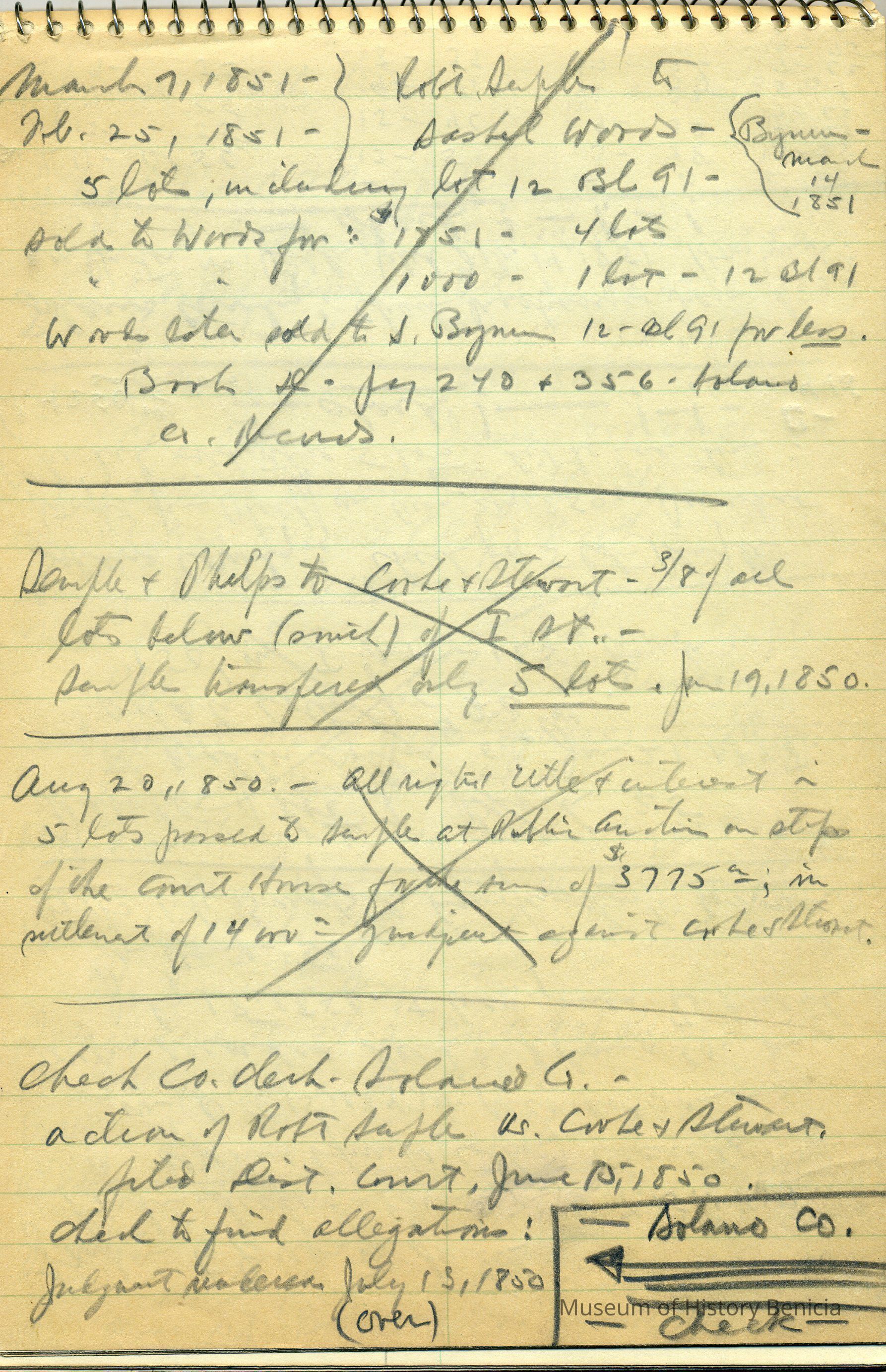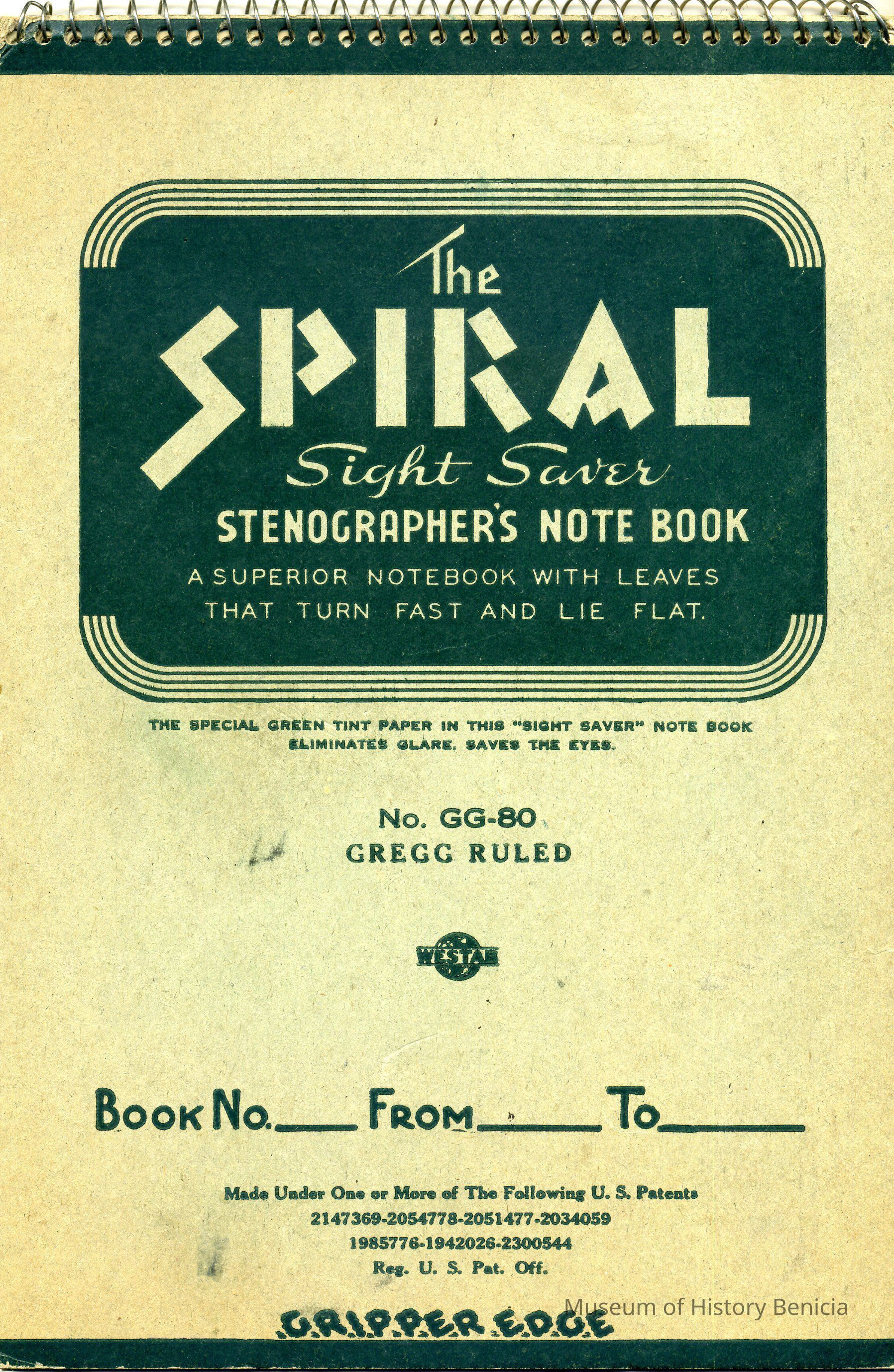 Spiral Stenographer's Note Book with Fred B Rogers, 259 Cambridge Ave., Berkeley 8, Calif written under the front cover. Appears to be notes on deeds and lot transfers. Each page has a vertical line drawn as if the information contained was properly transferred. Only a few pages have written information.Collection