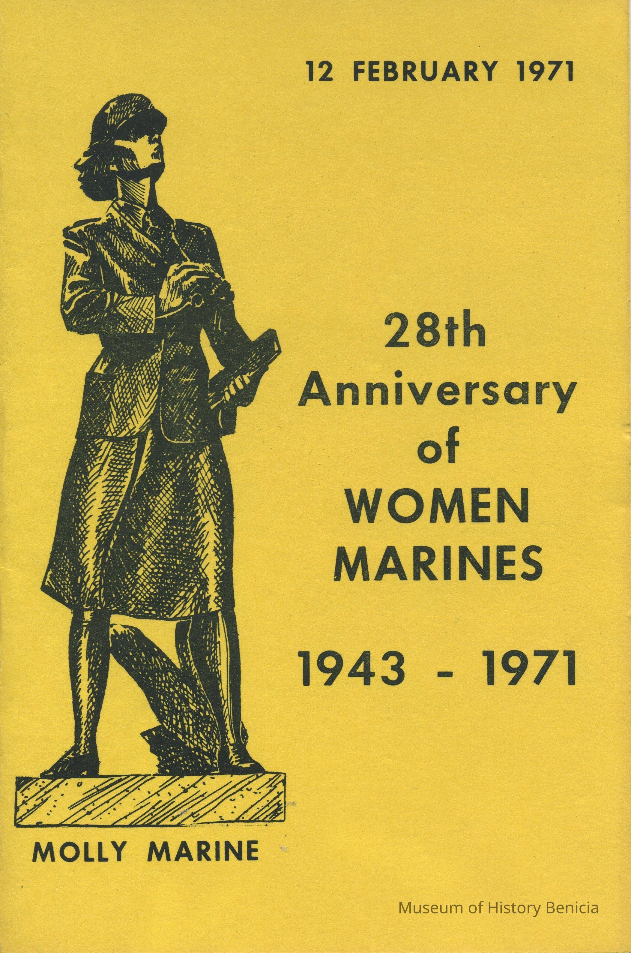 Pamphlet - "28th Anniversary of Women Marines 1943-1971" - 12 February 1971; drawing of "Molly Marine" on front