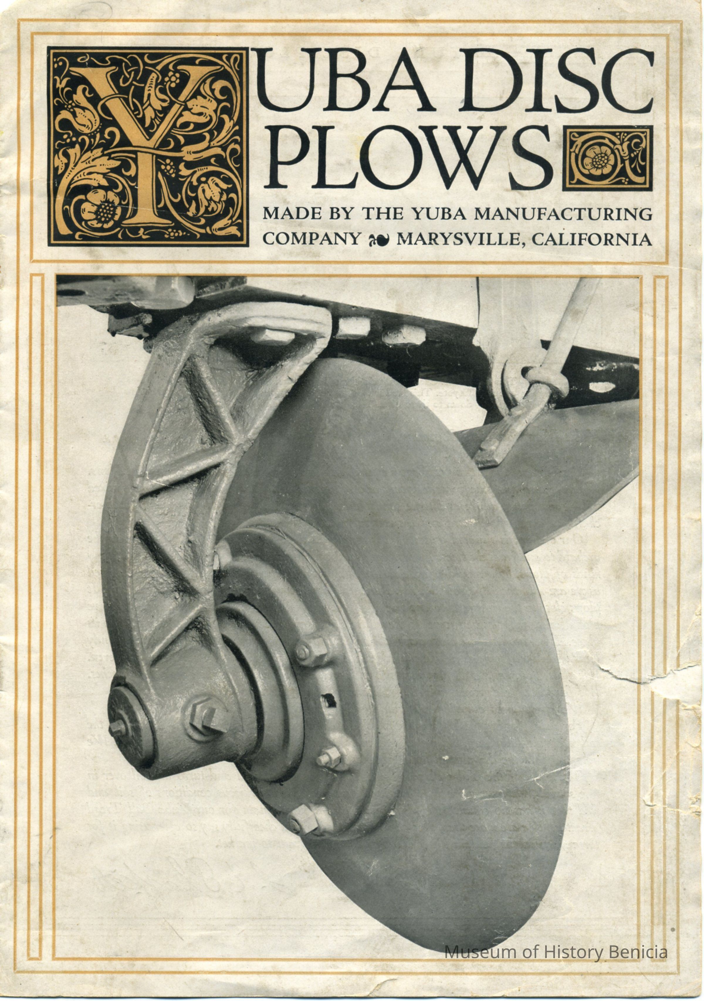 Brochure on Yuba dise plows made at Yuba Marysville Plant. 8 pages