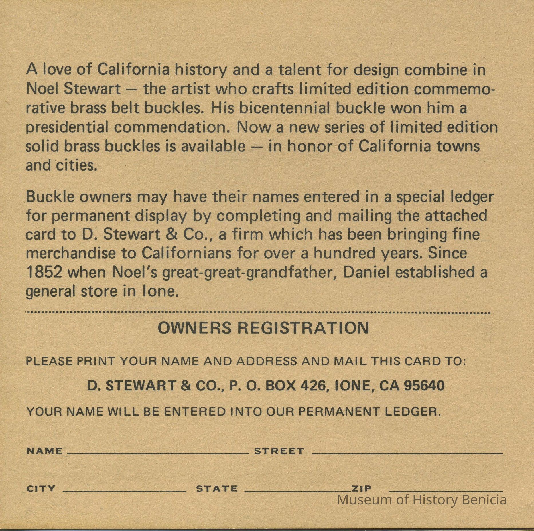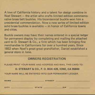 Booklet accompanying the "Benicia" Buckle;