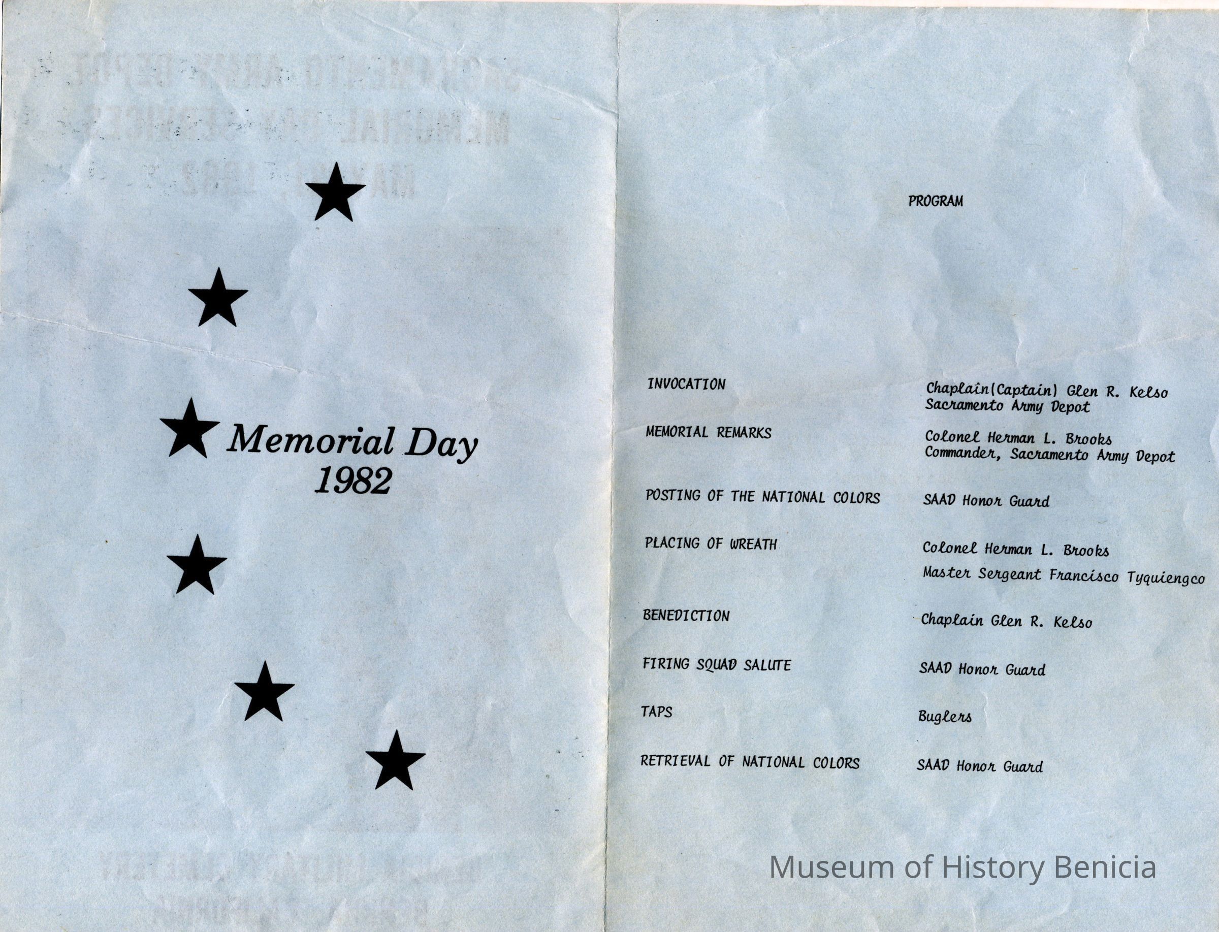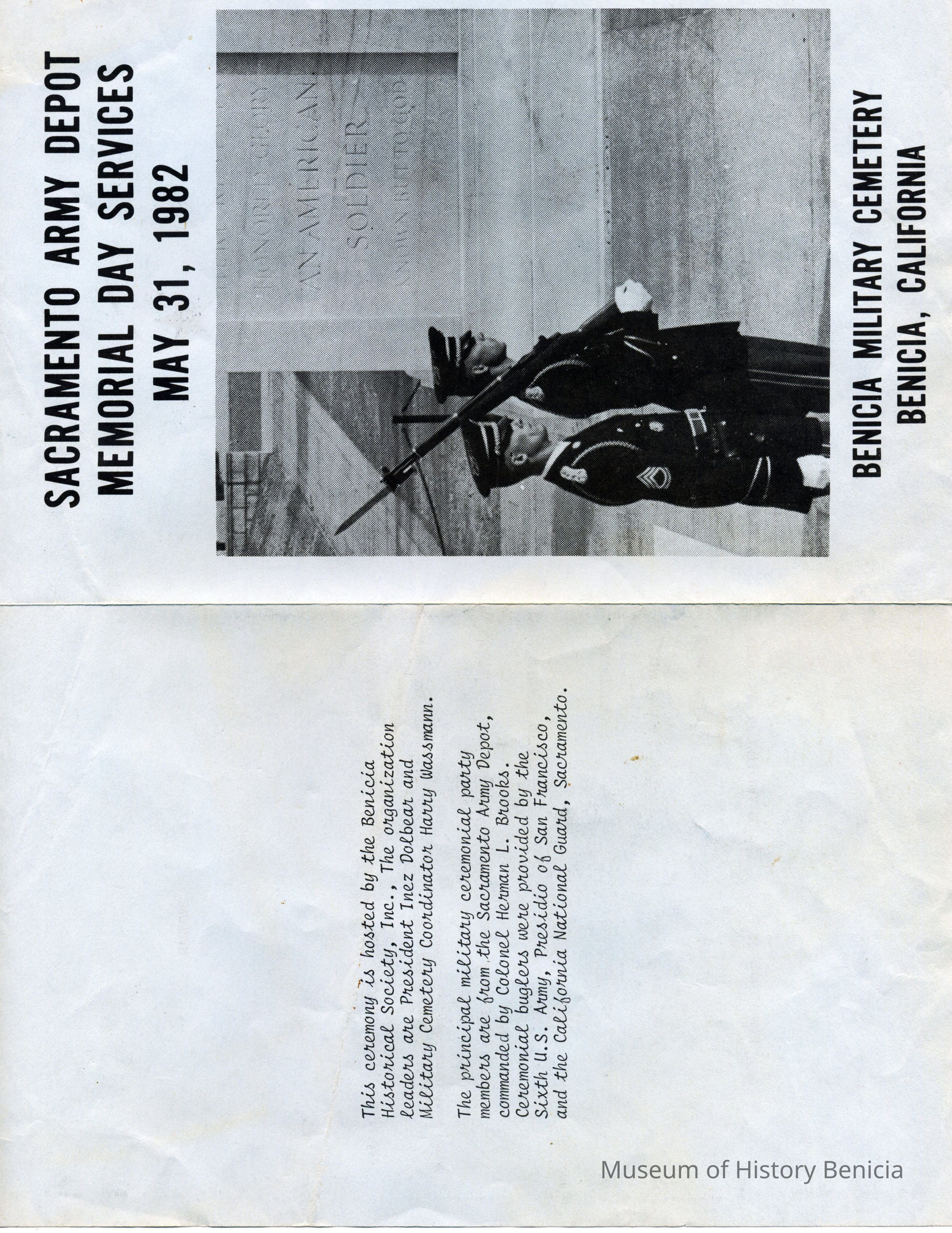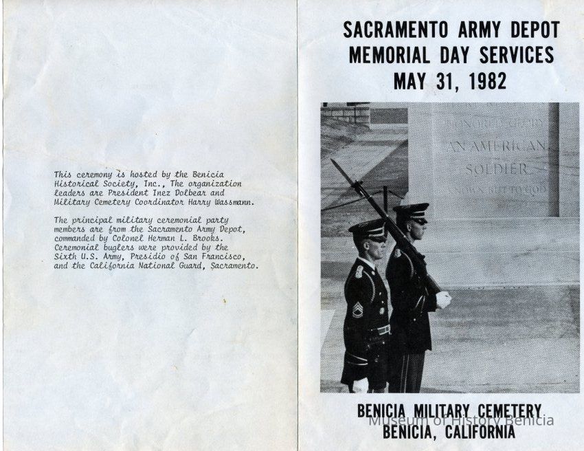 Pamphlet for the ceremony at the Benicia Military Cemetery.