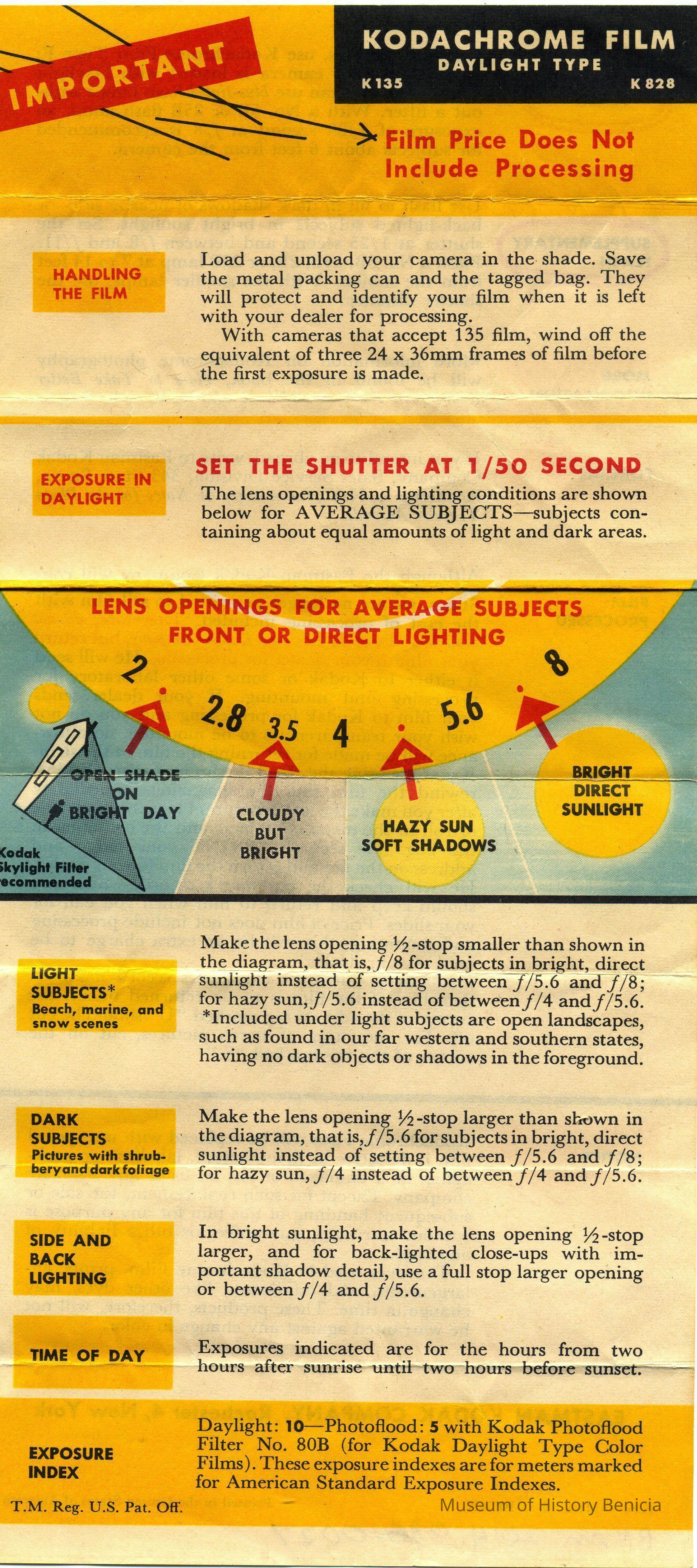 This is an instruction sheet that came with 35mm film. This one is for Kodachrome film Daylight Type 135 or 828.