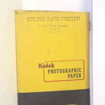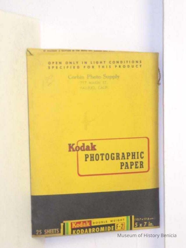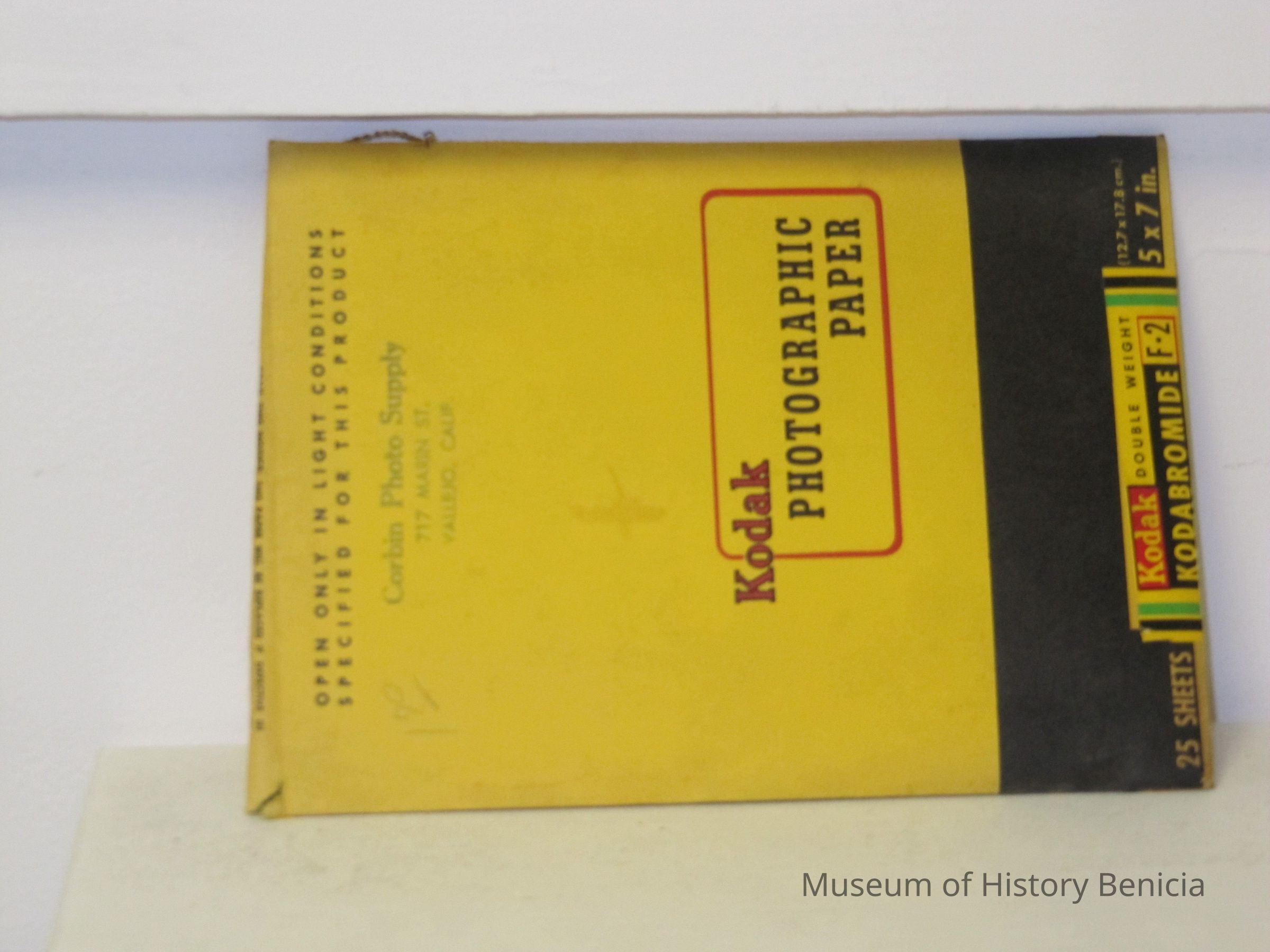 Envelope with photo paper from the Kodak co. dated 03/1961. 5 x 7 package has been opened and contains about 15-20 sheets. Stamped on front "Corbin Photo Supply 717 Marin St Vallejo, CACollection