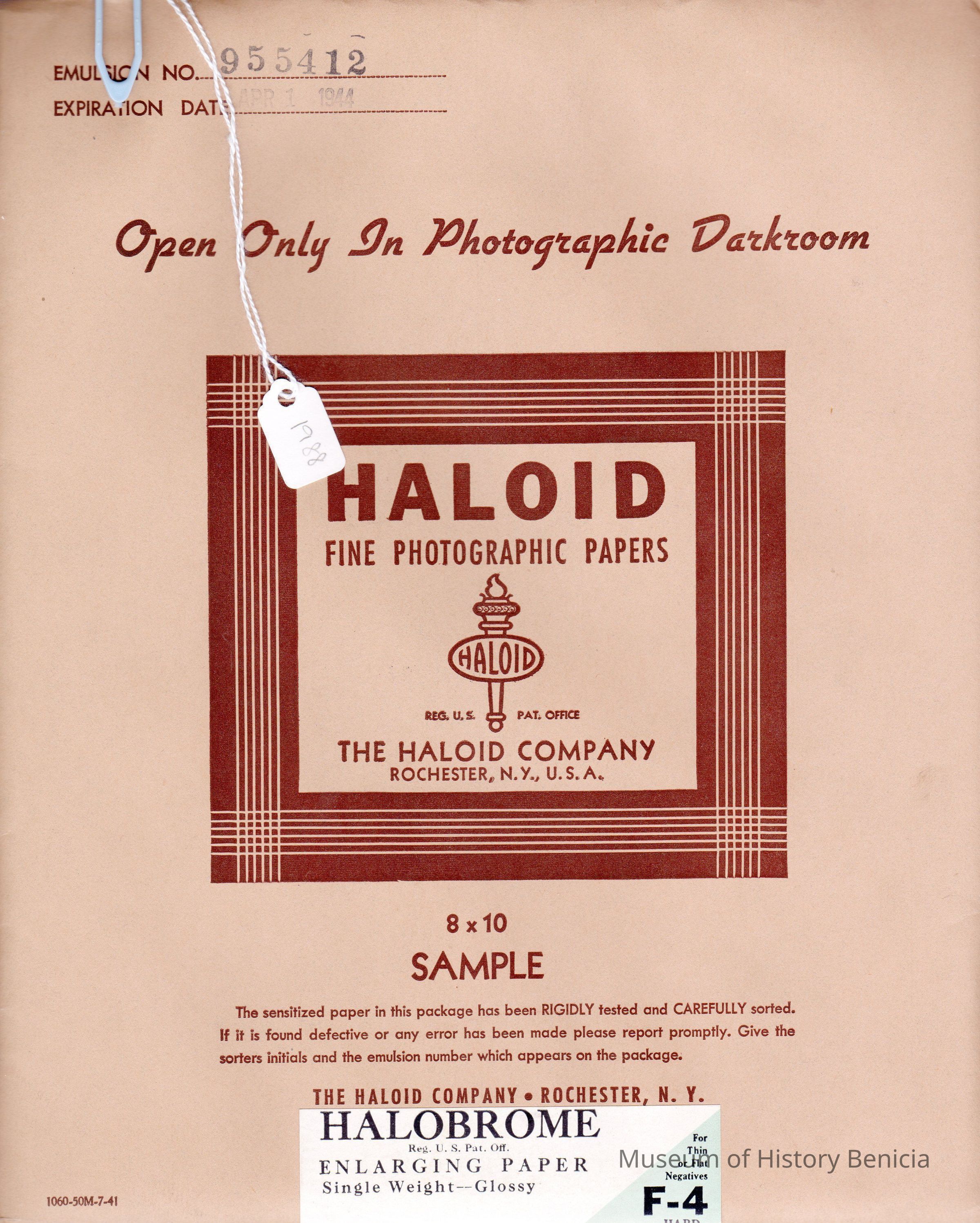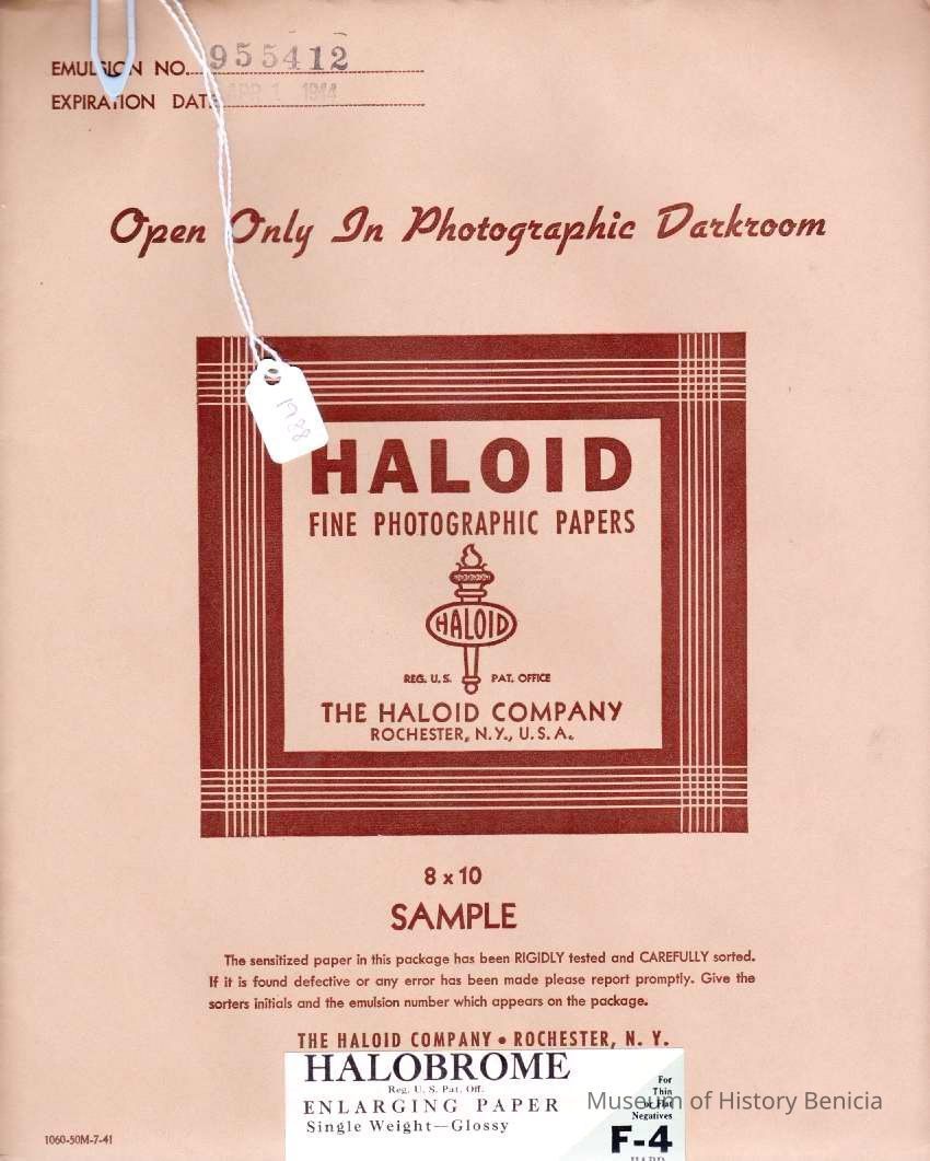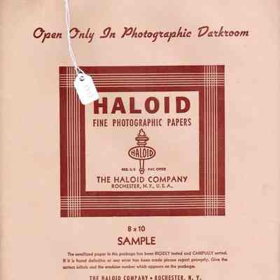 Haloid photo enlarging paper. 8x10 expired 04/01/1944. Halobrome unopened sample package type "F-4" for thin or flat negatives.