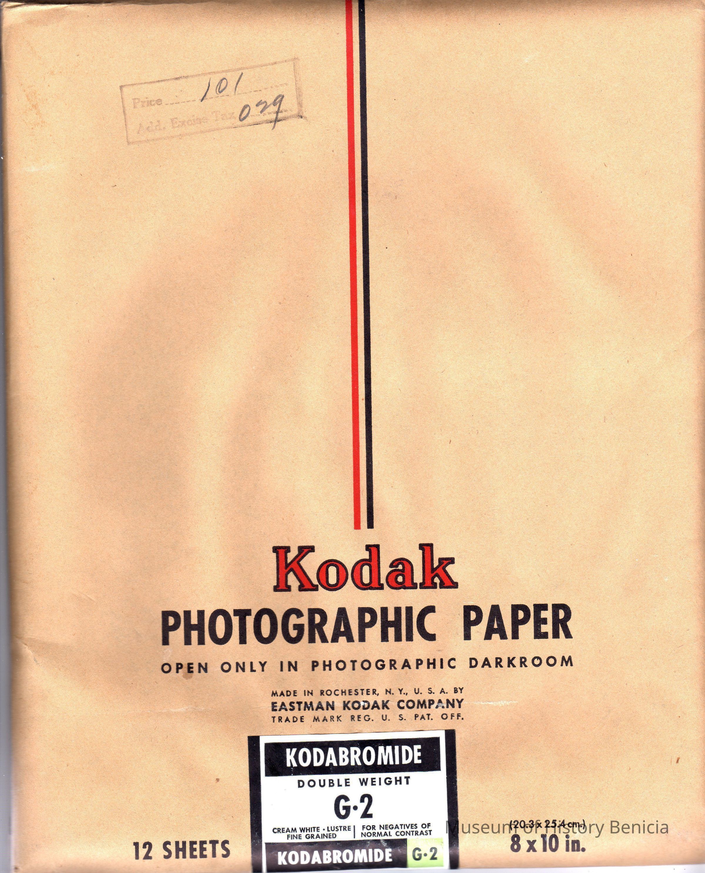 Kodak Photographic Paper in a pack G.2 for double weight. Kodabromide 8 x 10 expires Feb 1945