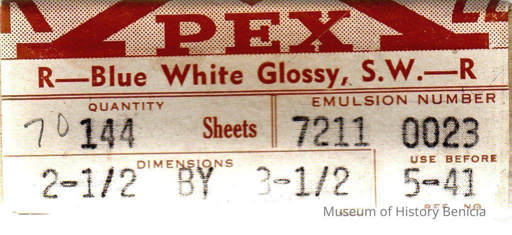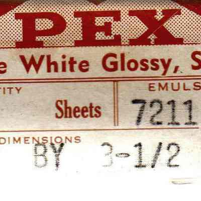 Defender Photo Supply photo paper. 21/2 x 31/2 blue white glossy. use by date 5/1941. Box contains 2 sheets.