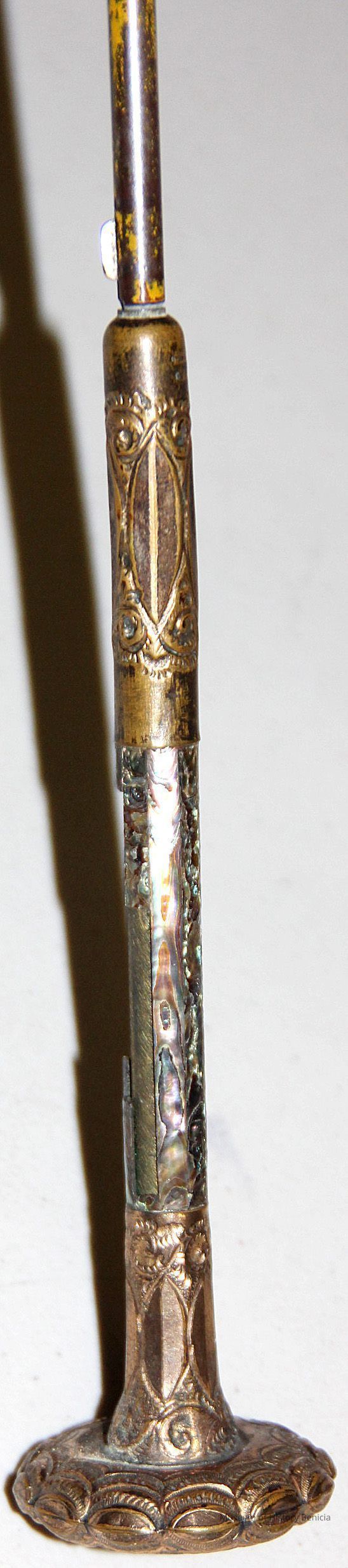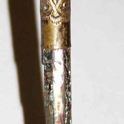 steel handle with abalone and brass inscription on bottom "Yisa Dec 251905".