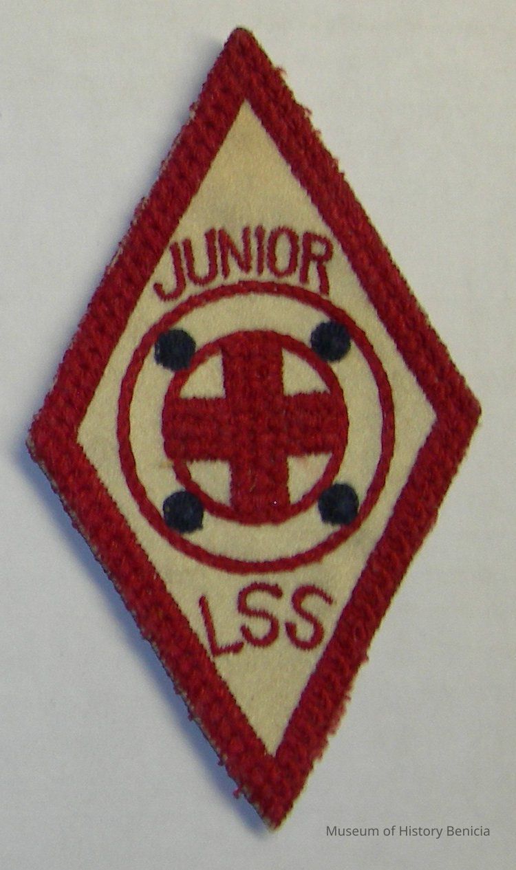 Very early Boy Scout Junior Life Saving Patch - highest rank "Life Saving Service" red embroidery on white background