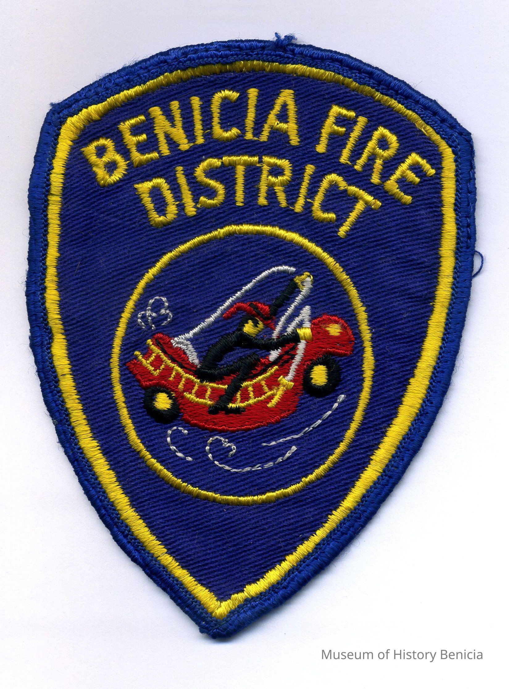 Patch - blue/yellow/red/white "Benicia Fire District" Shield Shape 3-1/2" x 5"