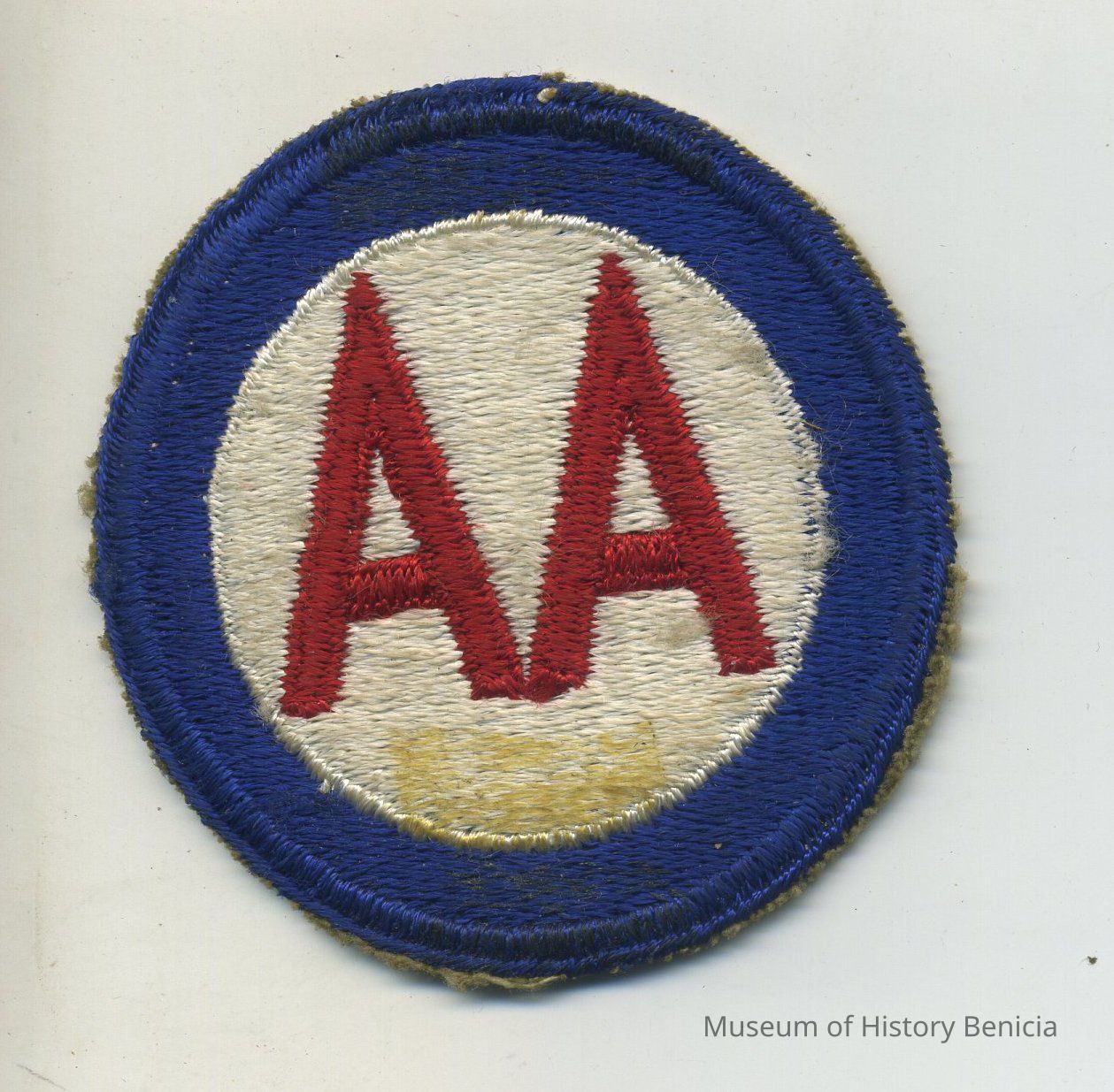 Patch - WWII Double A - Anti-Aircraft Command; two red A's in white circle with blue border; 2-1/2" diameter