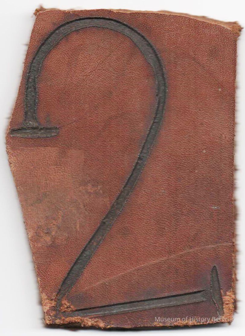 A partial copy of the original recording is adhered to the back of the piece of leather. The brand is "2" and placed on either the left or right hip.Collection