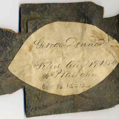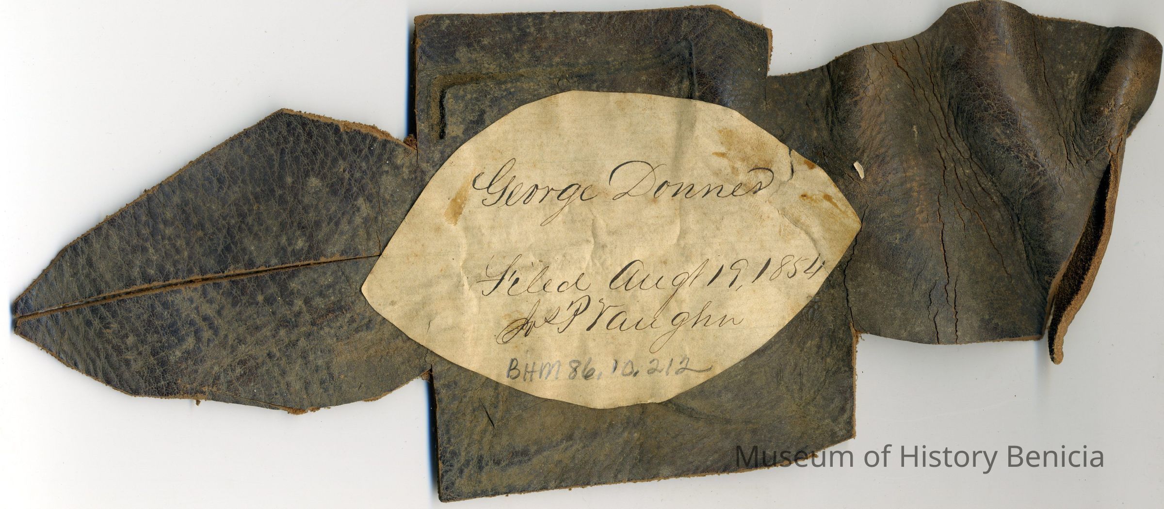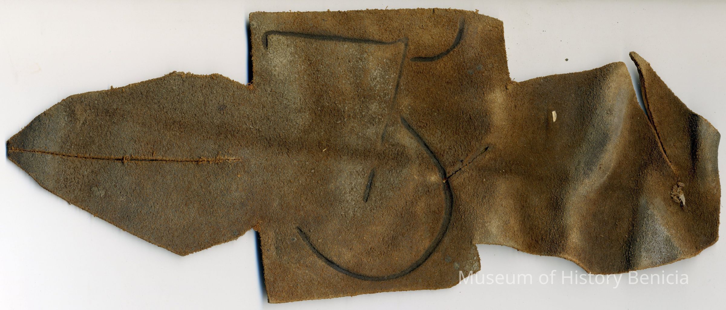Sample brand/earmarkings on a piece of leather for George Donne, registered on August 19, 1854, and is not written in a Ledger of the Solano County Recorder 1855-1916.