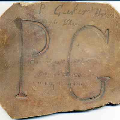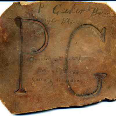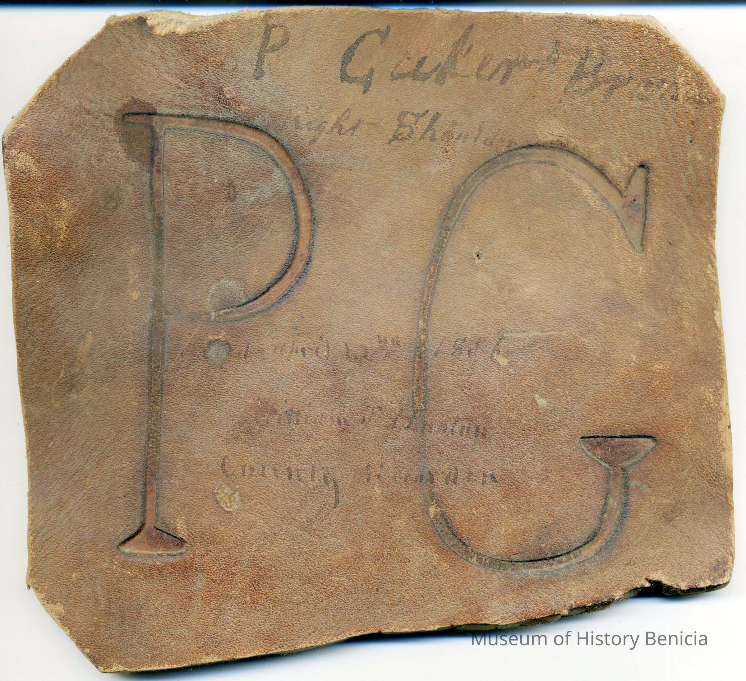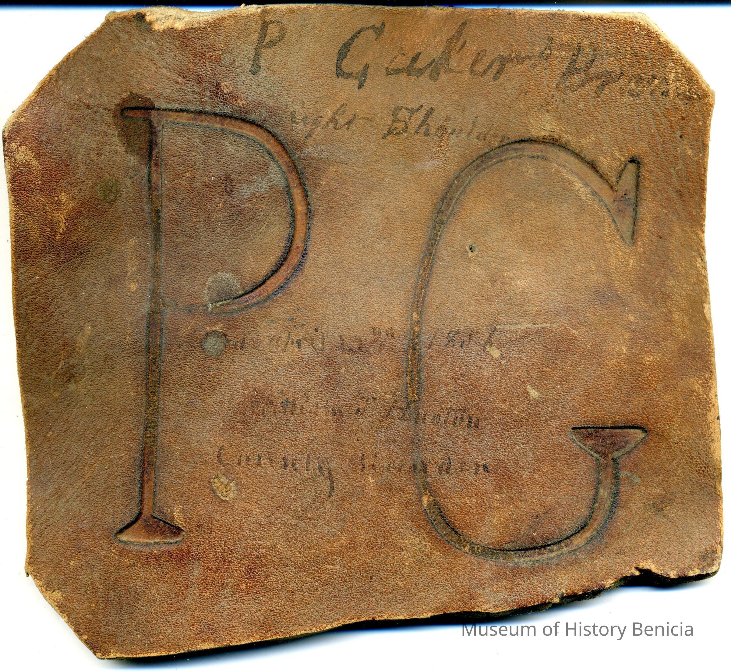 Sample brand stamped on leather for Peter Gueker (Guker) a true copy of the original filed April 22, 1856 as written in a Ledger of the Solano County Recorder 1855-1916 (page 5)