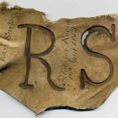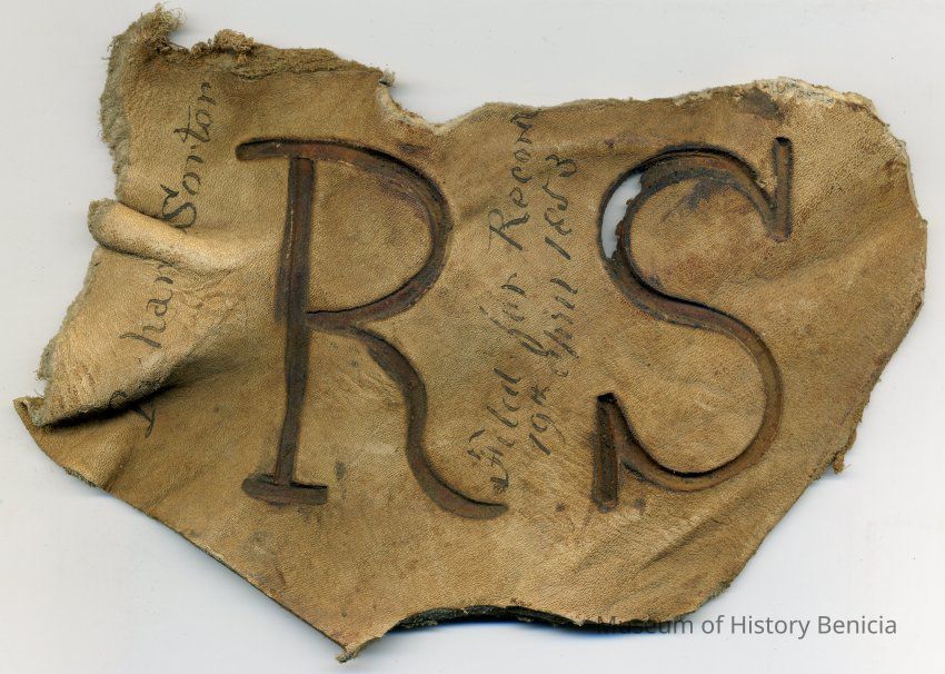 Sample brand on a piece of leather for Richard Sortor, registered in April 19, 1853, and is not written in a Ledger of the Solano County Recorder 1855-1916.
