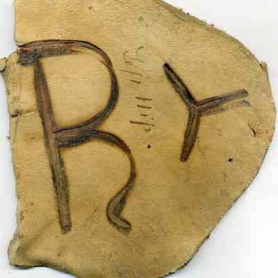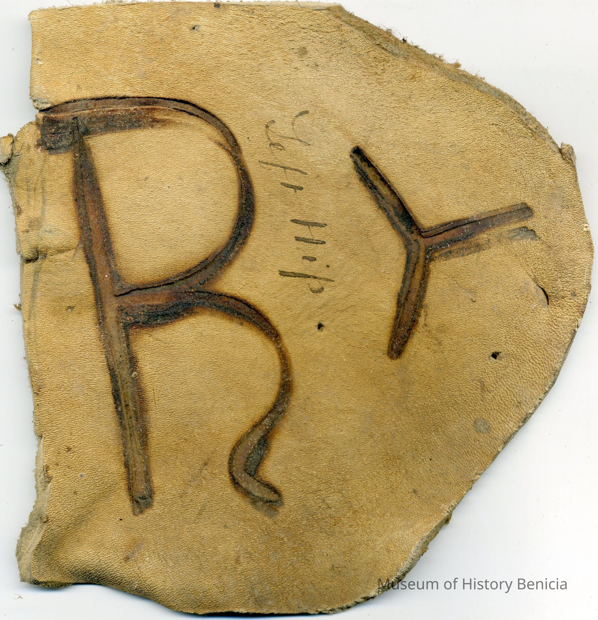 A partial copy of the recording is adhered to the back of the leather. The brand is a capital "R" with a small "Y" to the right and placed on the left hip.Collection