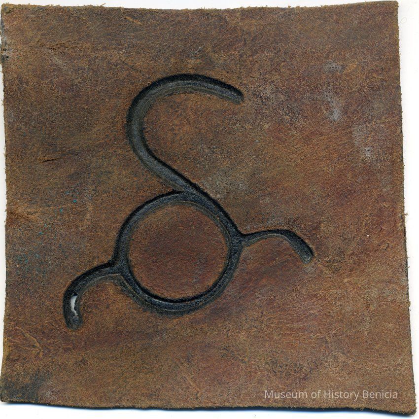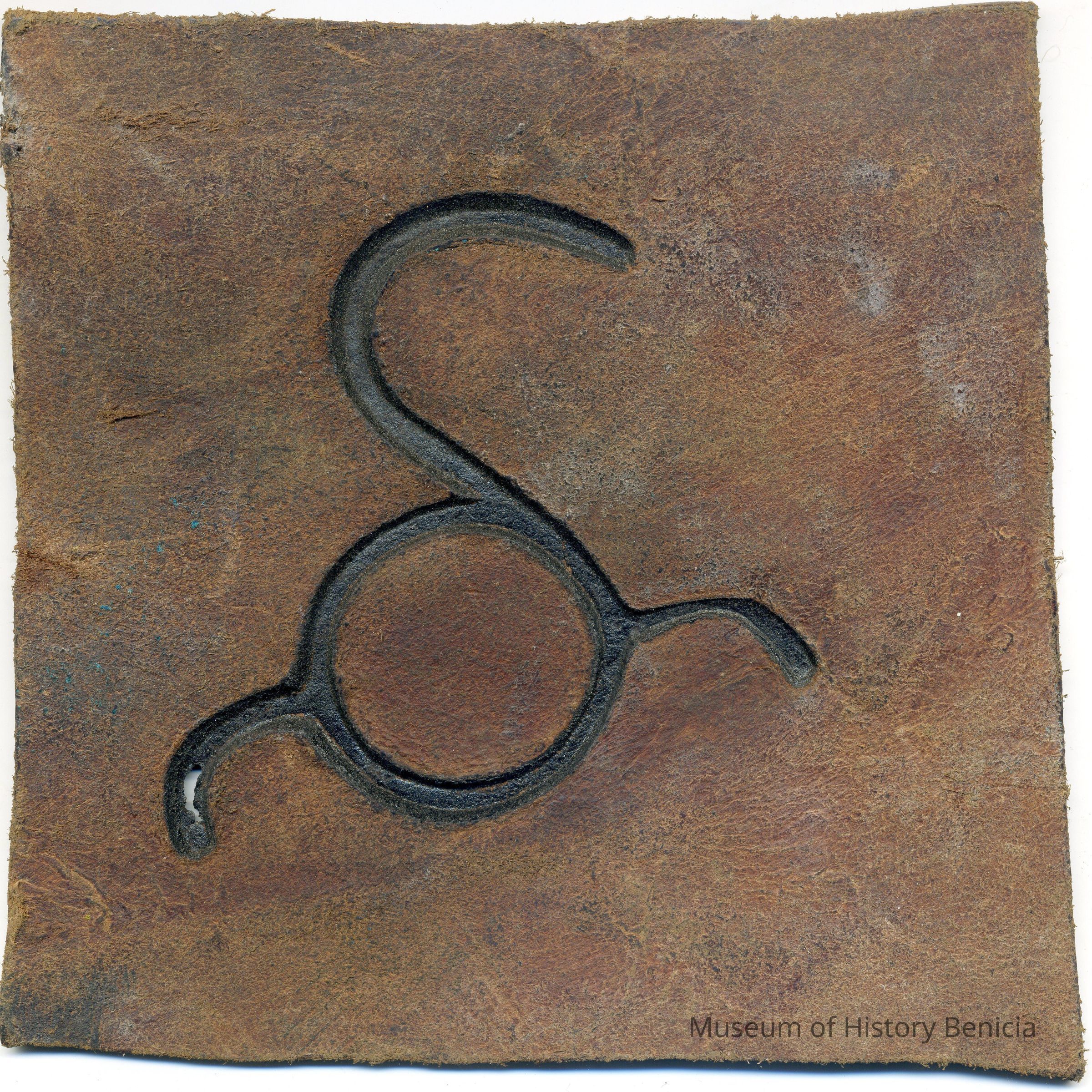 No copy of the recording is attached to the back of the leather. The brand is a Capital "S" with a circle inside the bottom of the "S" and a curved line going out of each side of the circle and the placement is on the left hip.Collection
