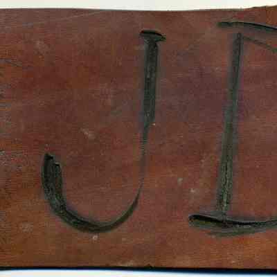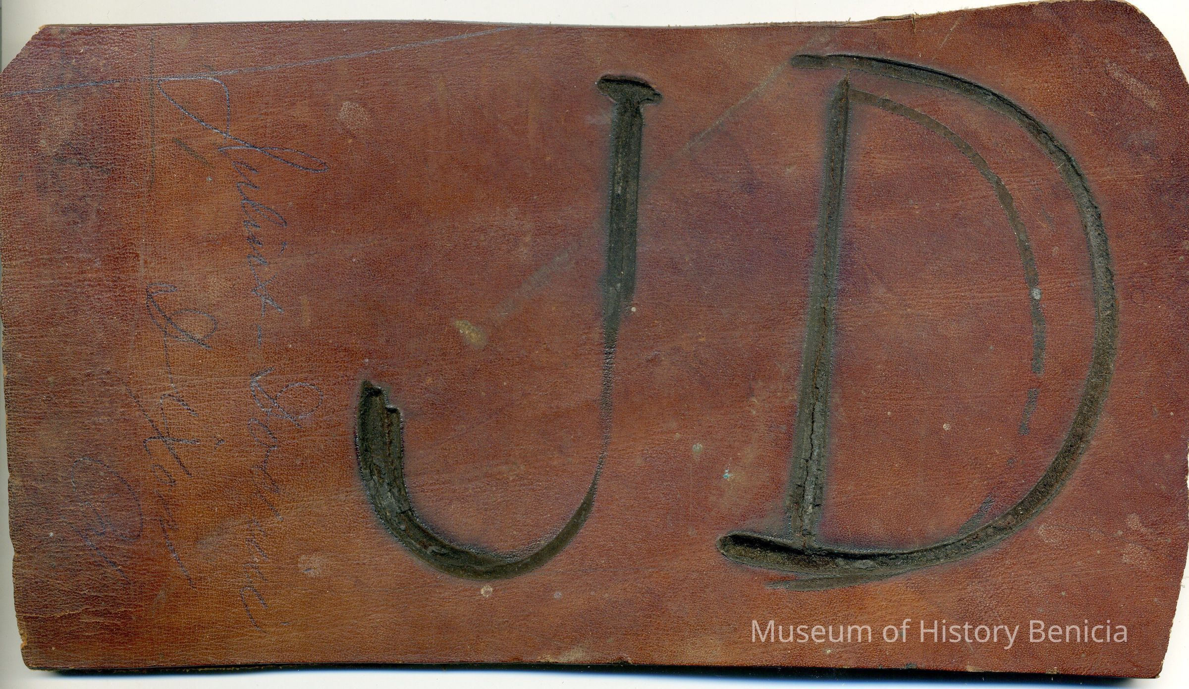 Sample brand on a piece of leather identified as belonging to John Dalton and registered on October 20, 1857, as written in a Ledger of Solano County Recorder 1855-1916 (page 25).