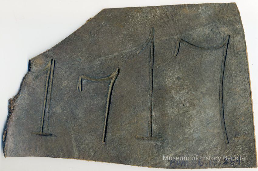 Sample brand on a piece of leather for an unknown individual, registration date is unknown because no information is written in a Ledger of the Solano County Recorder 1855-1916.