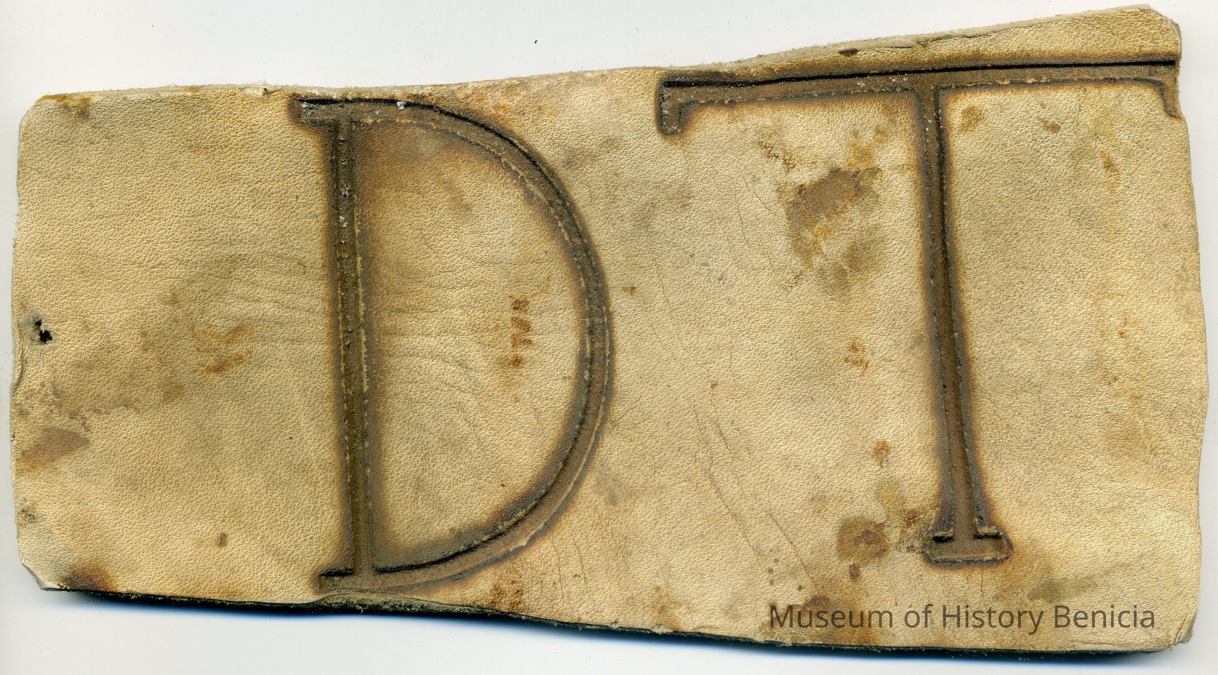 Sample brand on a piece of leather for David Testro, registered on December 12, 1857, as written in a Ledger of the Solano County Recorder 1855-1916. (page 35)