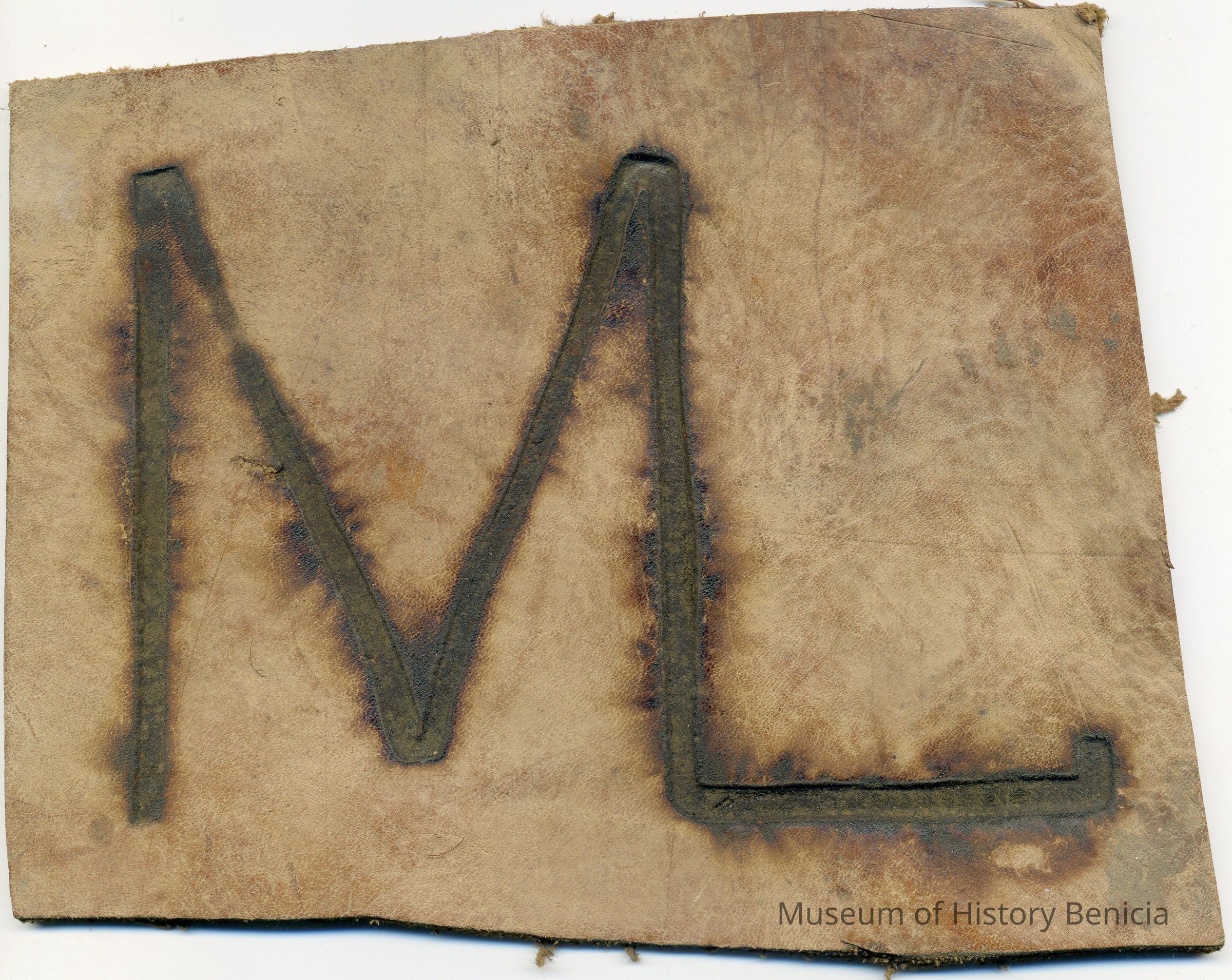 A partial copy of the recording is attached to the back of the leather. The brand is a capital "M" with a capital "L" attached to its right side. Placement in on the left hip.Collection
