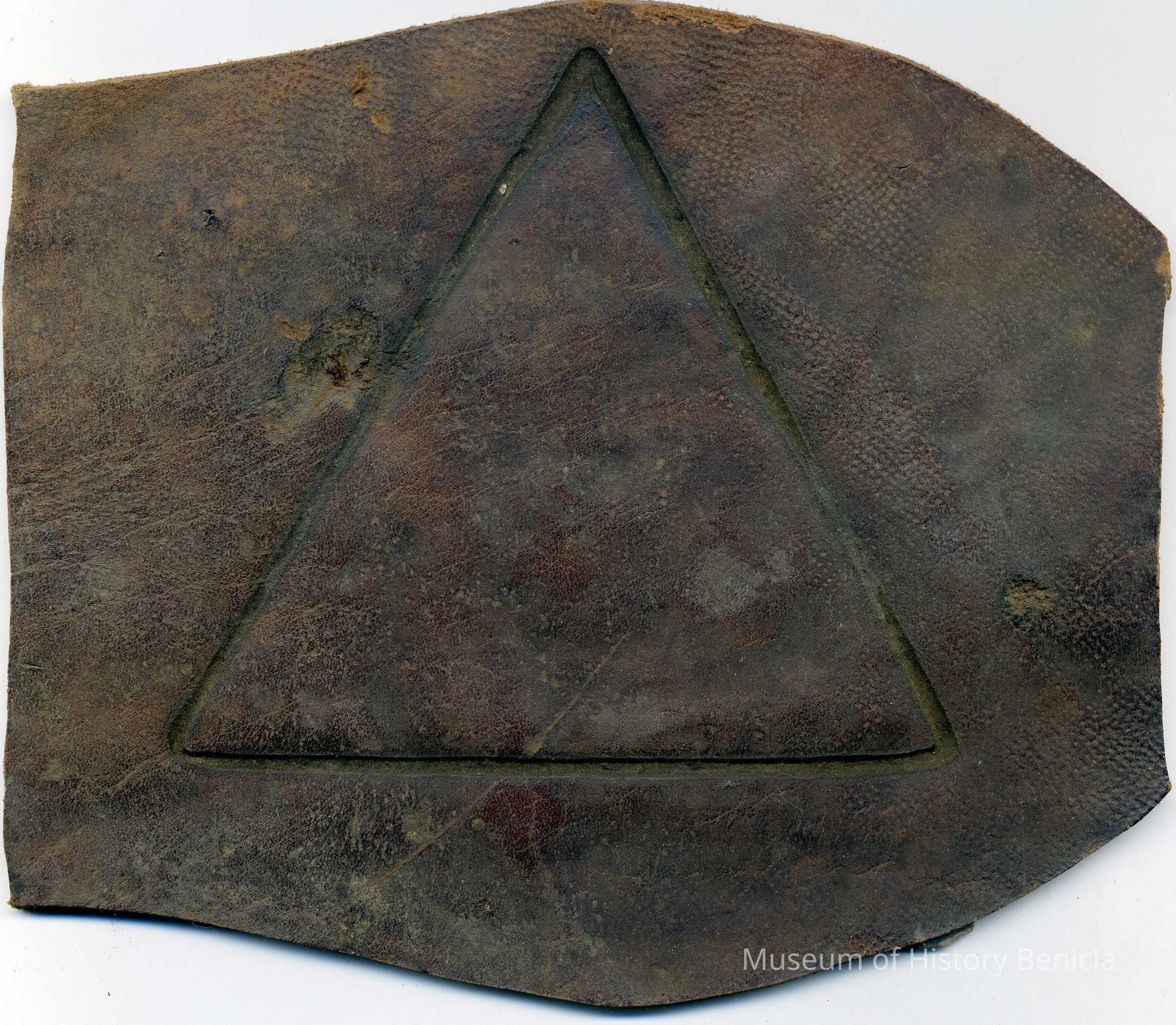A partial copy of the original recording is adhered to the back of the leather. The brand is a triangle and placed on the left hip.Collection
