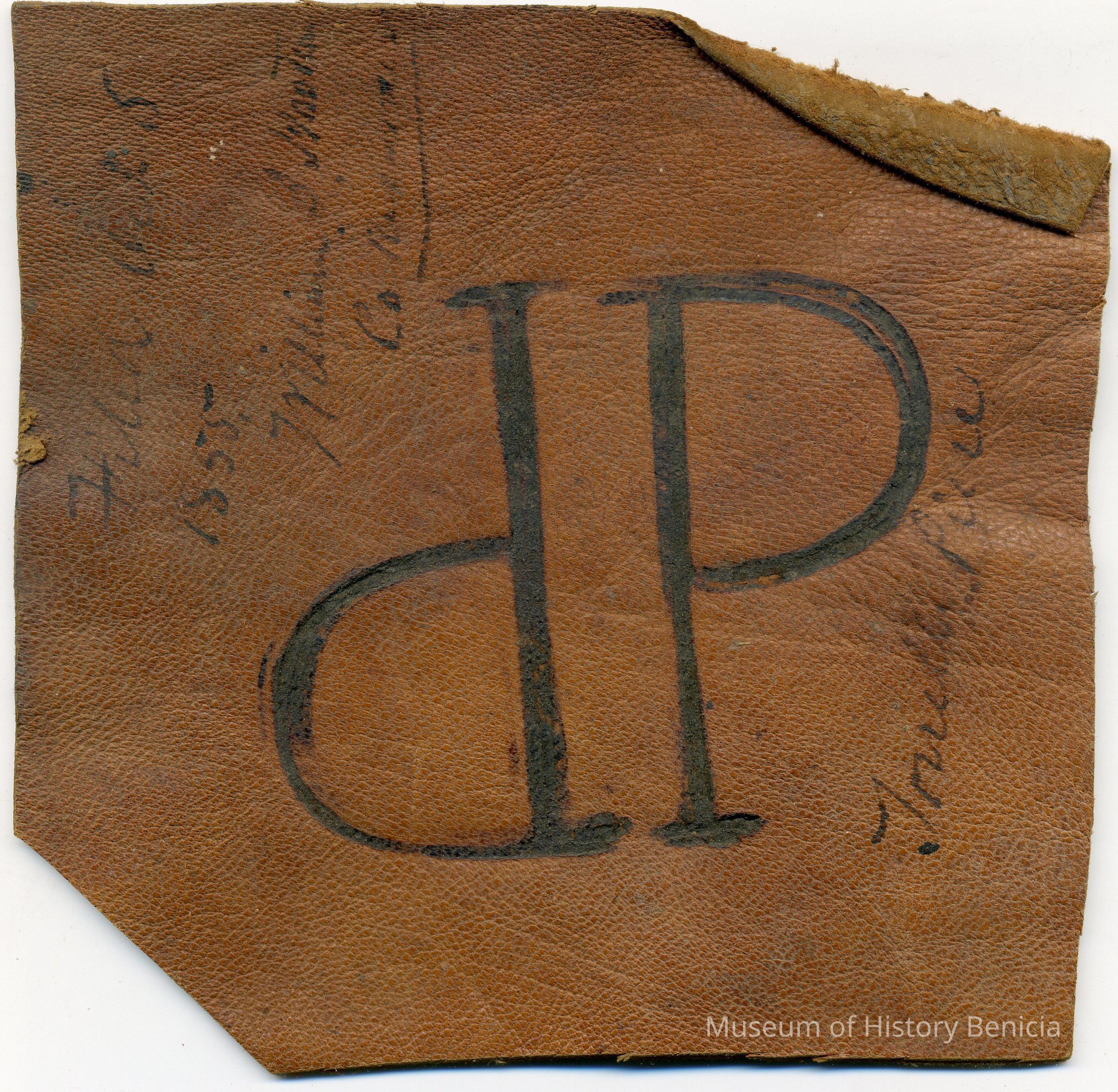 Sample brand on a piece of leather for Torrelli Pierre, registered on October 6, 1855, as written in a Ledger of the Solano County Recorder 1855-1916. (page 1)