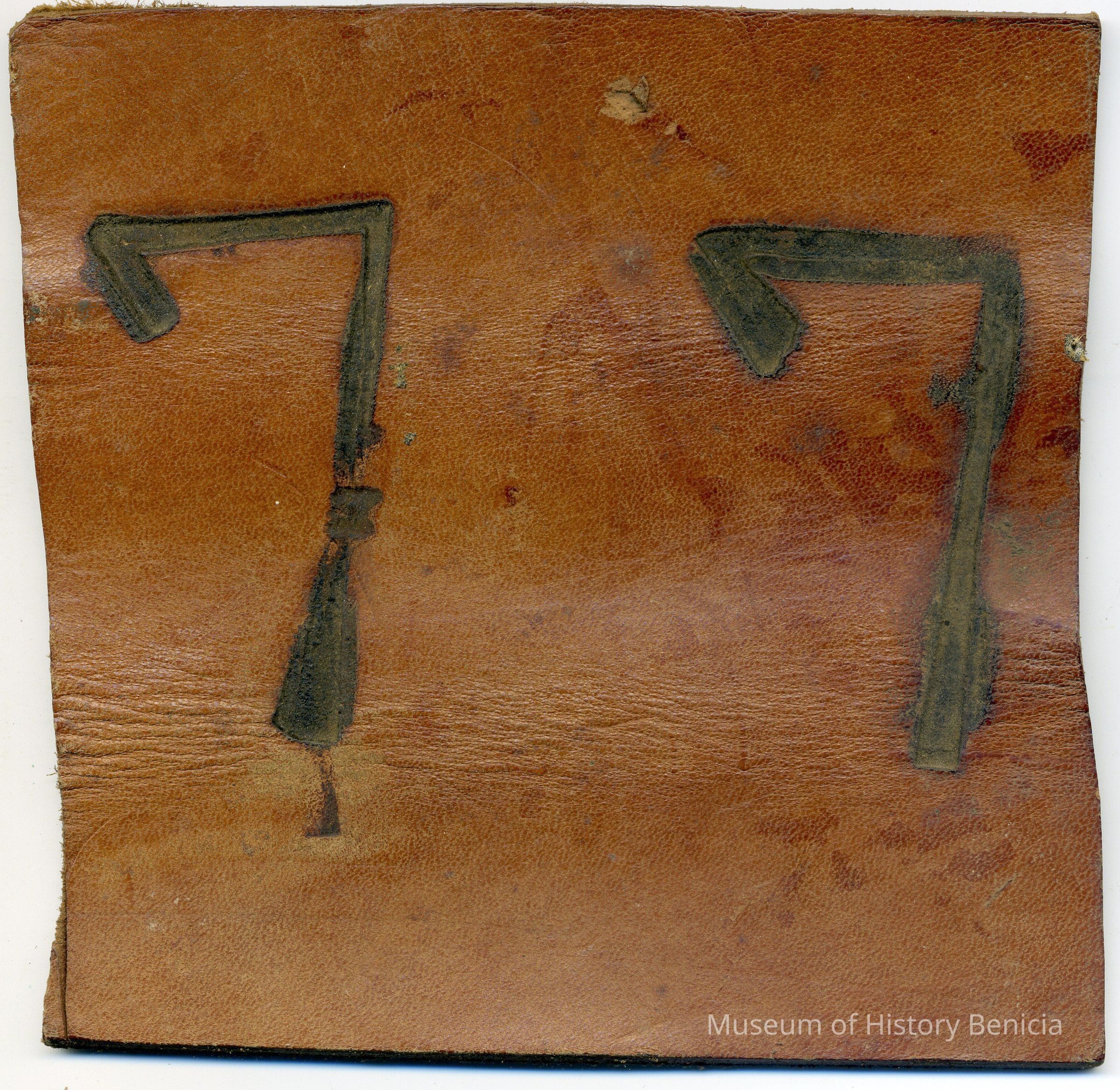 A copy of the original recording is adhered to the back of the leather. The brand is "7 7" but no placement is noted.Collection