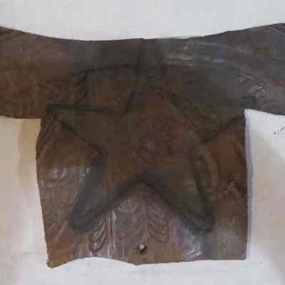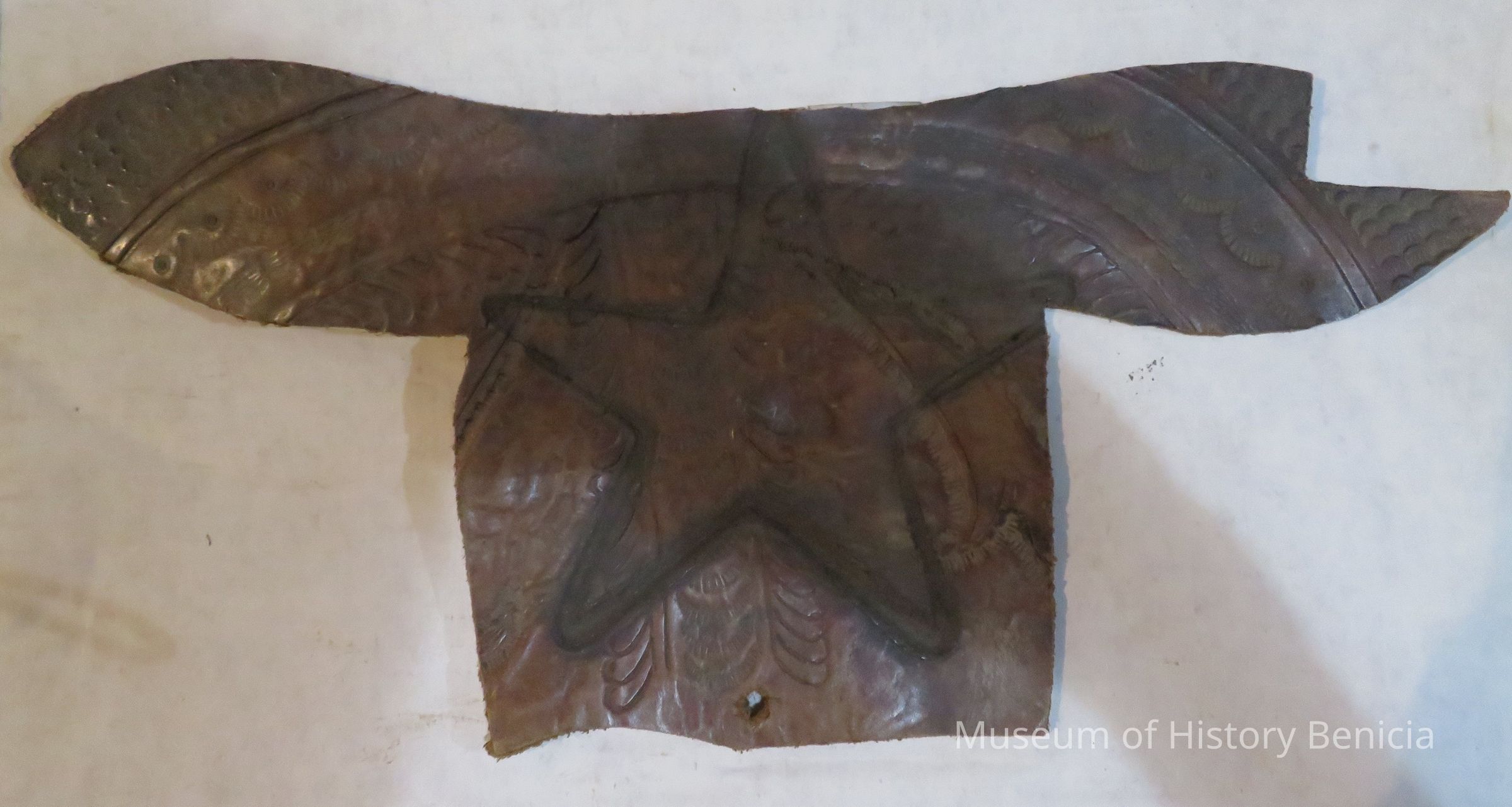 A partial copy of the original recording is adhered to the back of the leather. The brand is a star and placed on the left hip. There is some embossing on the front of the leather piece.Collection