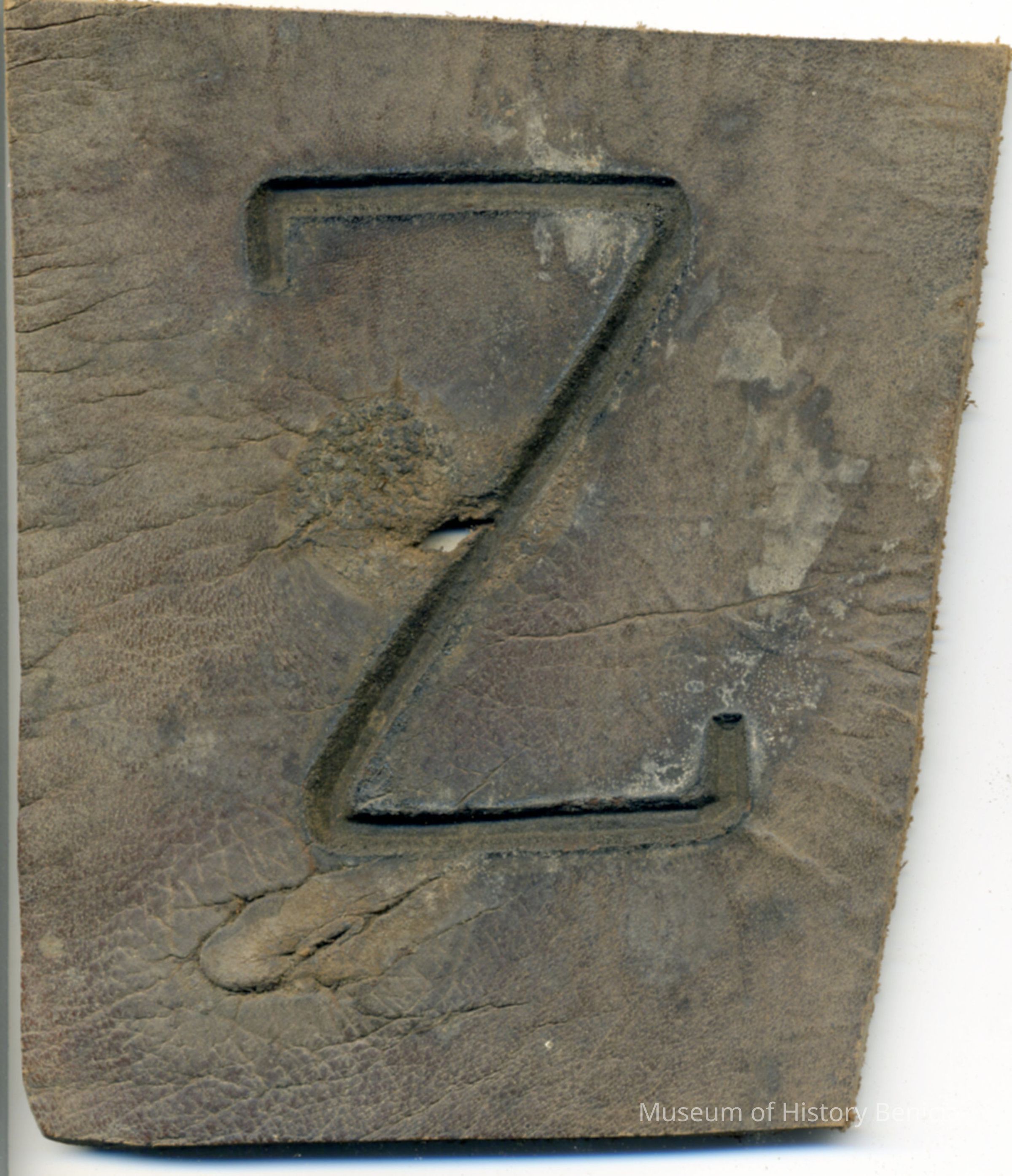 A partial copy of the original recording is adhered to the back of the leather. The brand is a "Z" and placed on the right hip.Collection