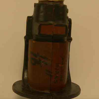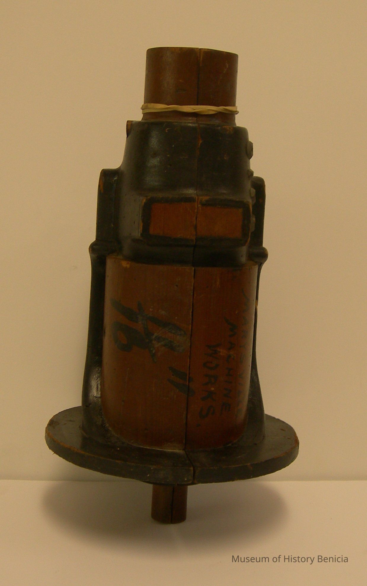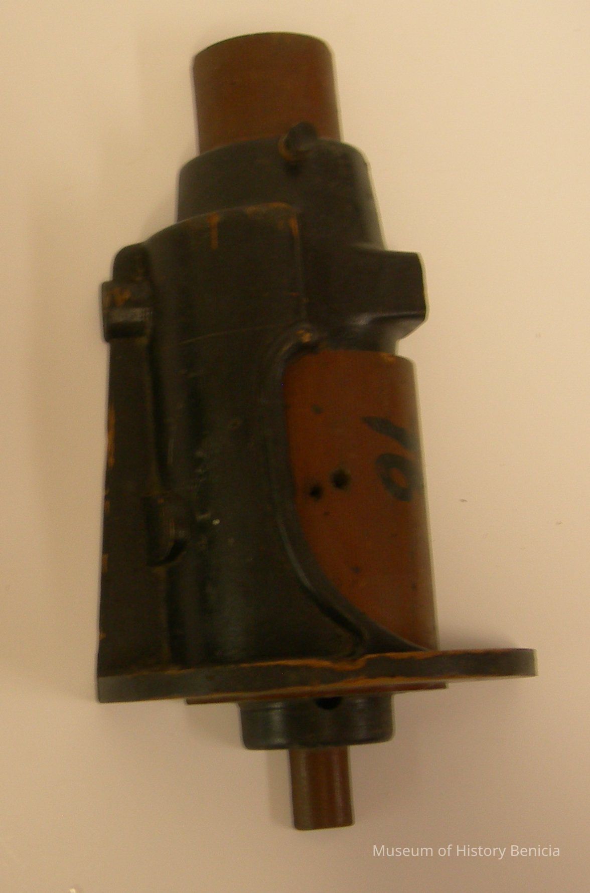 Yuba Pattern - Black/brown; multi-shaped; black lettering: 11/16"; has pegs on back to fit companion piece; 5-1/2" wide (widest) - 3/4" wide (narrowest) x 3" deepest) - 7/8" deep (narrowest) x 10" tall.Collection