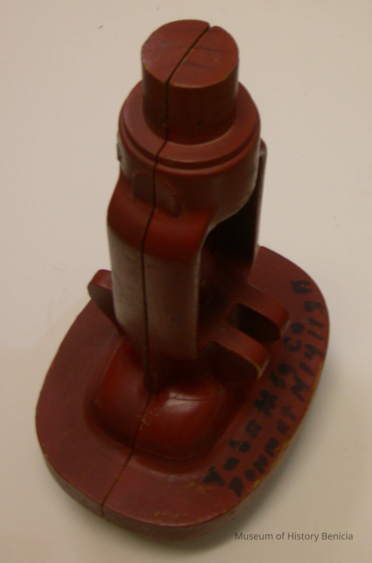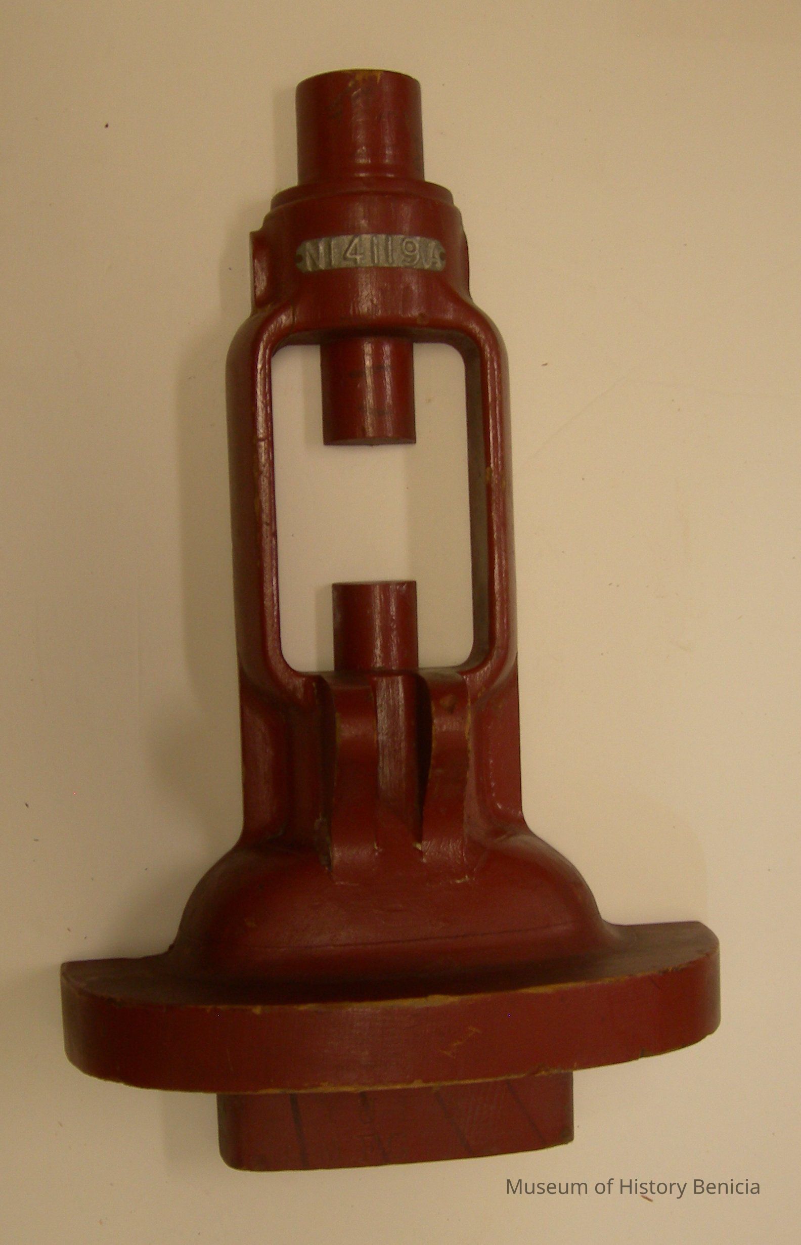 inside: "Spec Core" and "Yuba Mfg N14119A"; metal tag on outside: "N14119A" multi shaped; has holes in back to fit companion piece; 10" wide (widest) - 2" wide (narrowest) x 4" deep (deepest) - 1" deep (narrowest) x 16-1/2" tall.Collection