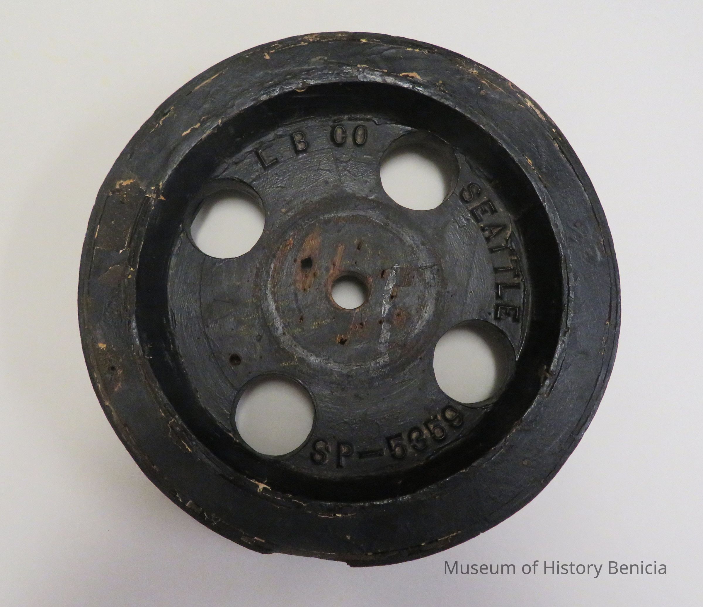 Casting pattern used at Yuba. Painted black and made of wood with LB oo, Seattle, SP-5359 embossed on surface.