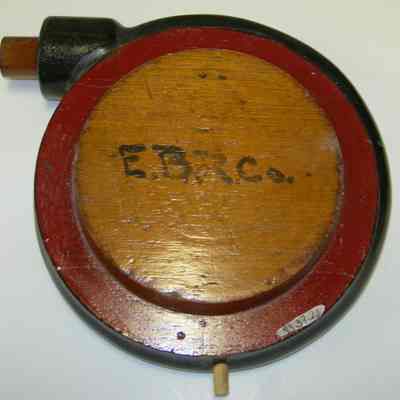 wooden casting pattern from Yuba Manufacturing Company. metal label "PB"