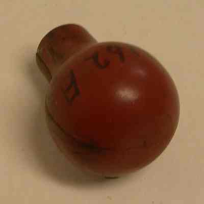 Yuba Pattern - Dull red with black lettering: N14162A"; bulbous shape;