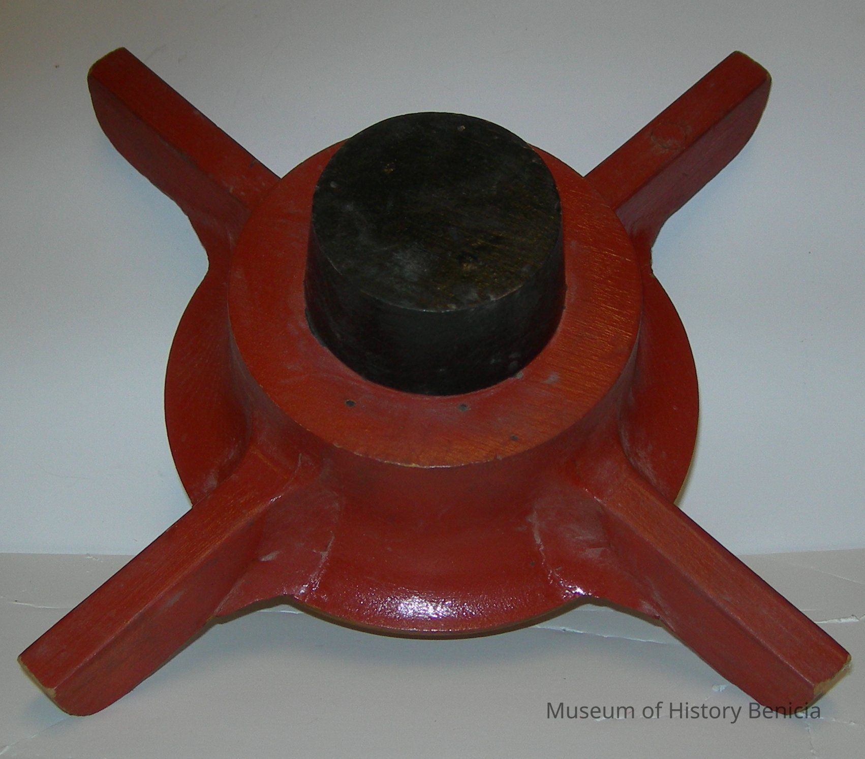 red bottom has four "arms" radiating from round center piece: 5-5/8" diameter;