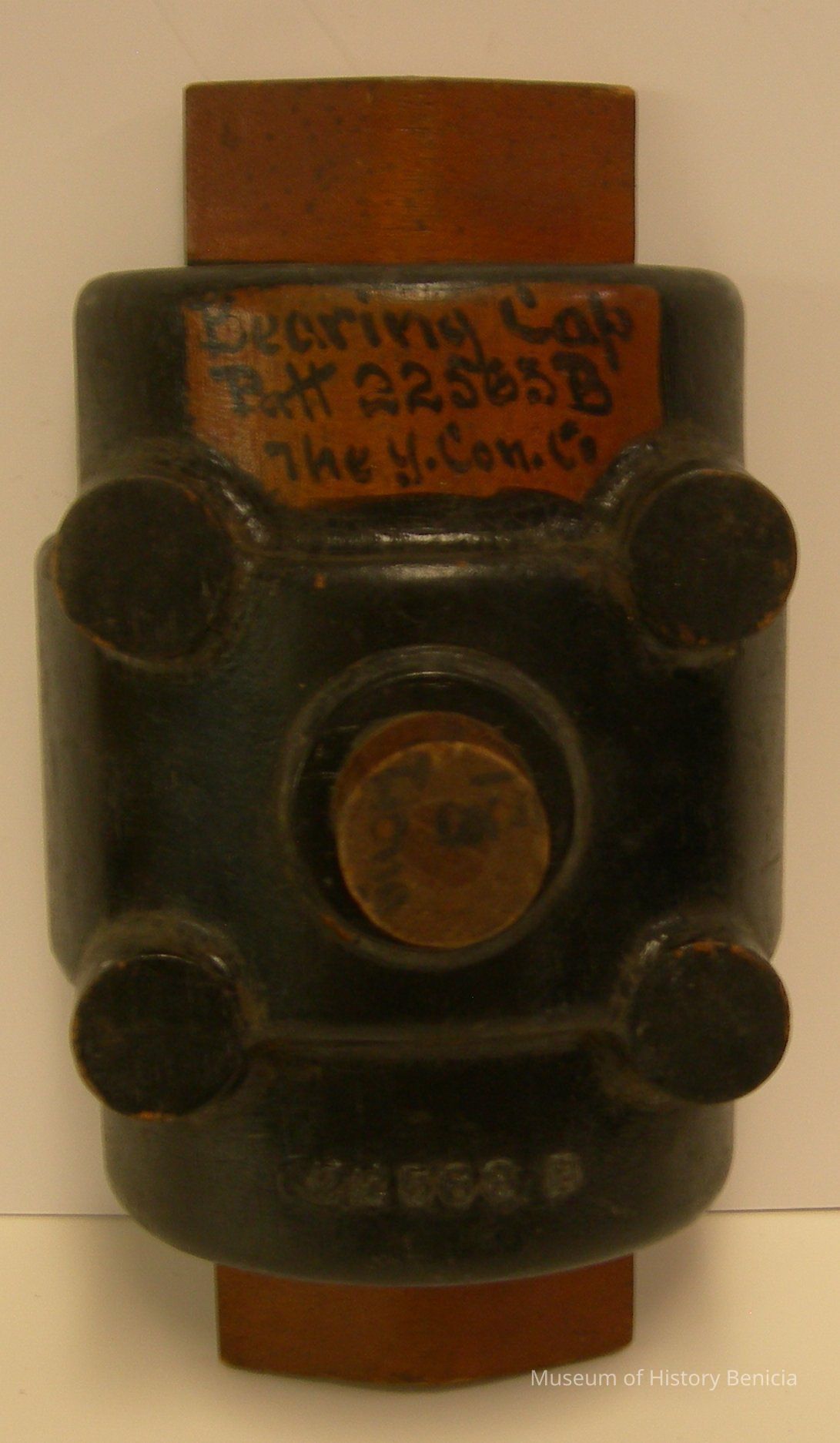Yuba Pattern - Black/brown; multi rounded in shape; lettering in black ink: "Bearing Cap / Patt. 22563B / The Y Con. Co."; individual metal numerals: "2 2 5 6 3 B";