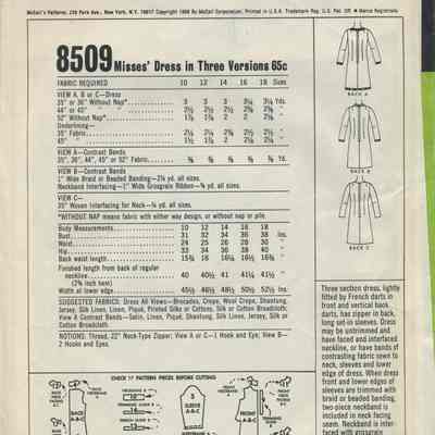 Sewing Pattern - Printed Pattern McCalls #8509