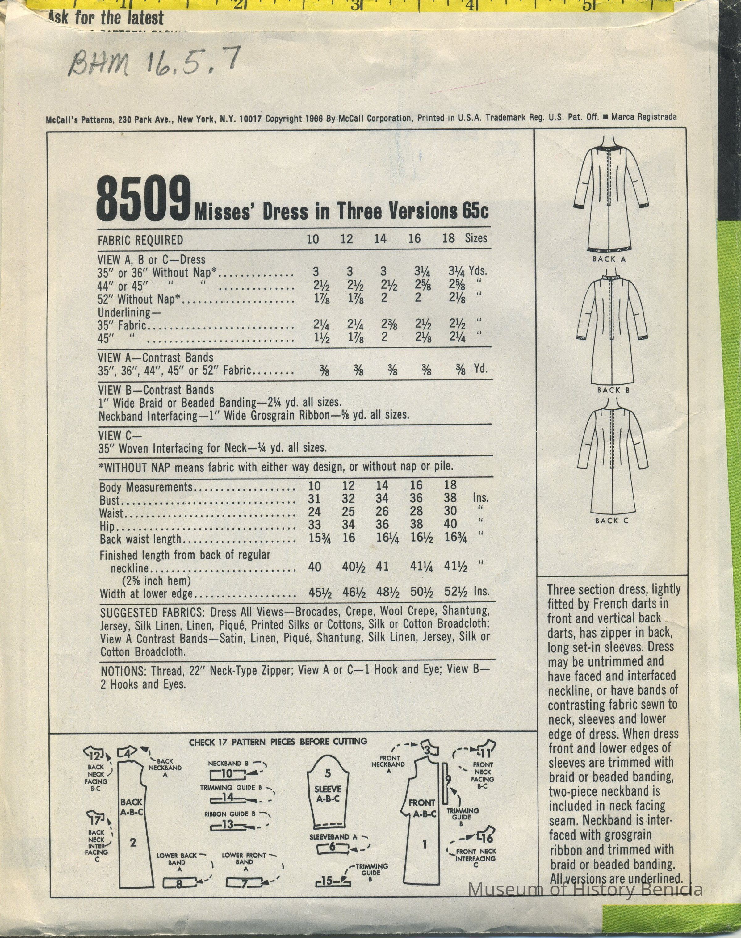 Dress in Three Versions - Copyright 1966